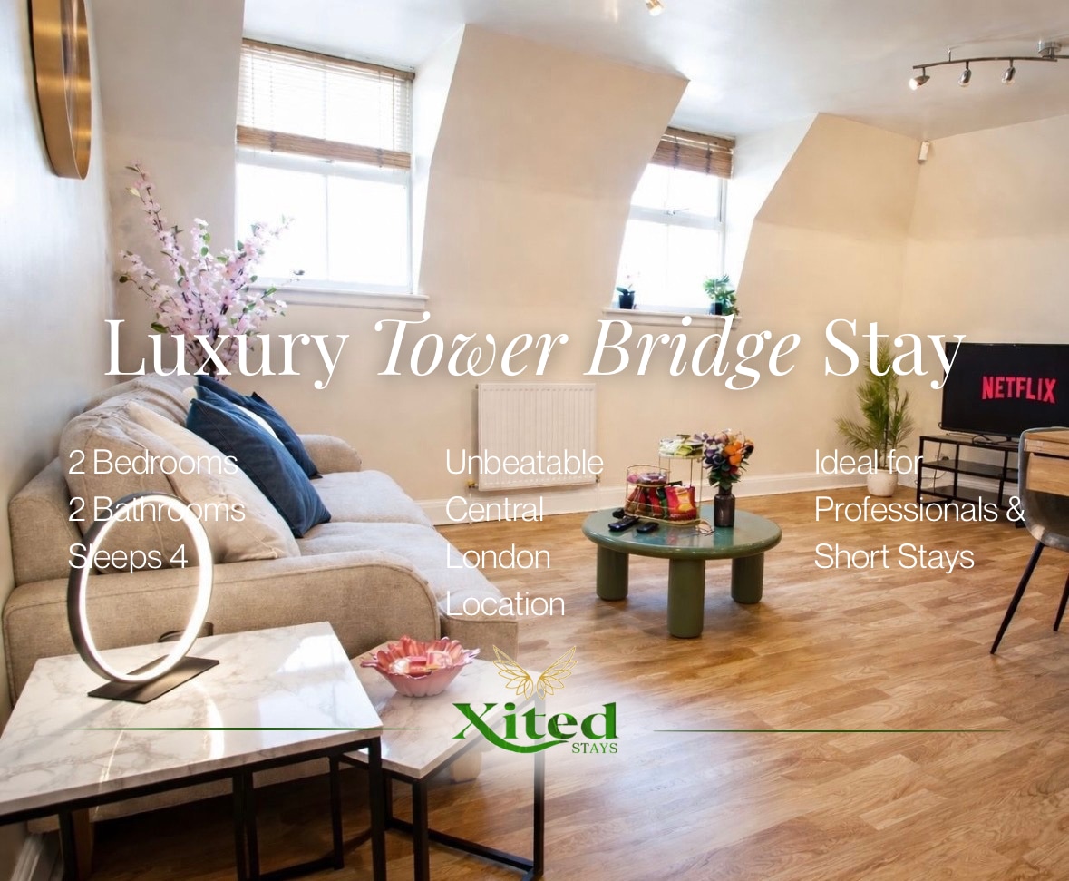 Flat satu bilik tidur mewah dan cerah terletak dengan mudah hanya beberapa minit ke Tower Bridge dan Tower of London, Shard dan London Bridge yang terkenal. Apartmen ini cerah, luas dengan simpanan yang mencukupi di seluruh apartmen. Di ruang tamu, terdapat katil sofa double besar yang selesa yang boleh memuatkan dua tetamu tambahan. Dapur juga menawarkan mesin kopi, ketuhar gelombang mikro, cerek, ketuhar dan peti sejuk dan peti sejuk beku dan mesin basuh. Ia menampilkan bilik mandi bergaya dengan tab mandi.