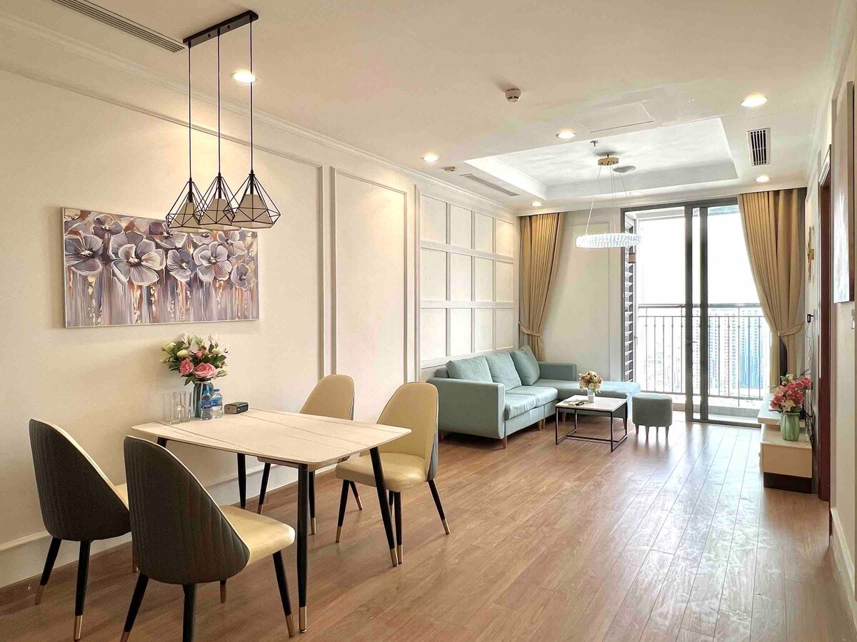 Apartmen cantik di kawasan bandar moden ini hanya 20 minit memandu dari Old Quarter, Hoàn Kiếm Lake, dan berhampiran dengan lapangan terbang. Kompaun ini menawarkan kemudahan penuh: kolam renang, pusat sukan, pusat membeli-belah, pawagam, hospital, kafe, dan restoran. Apartmen ini direka untuk ketenangan dengan kehijauan, buku, seni dan muzik. Sesuai untuk mereka yang mencari ketenangan semasa perjalanan perniagaan atau percutian di Hanoi. Dapur serba lengkap; makanan keluarga gaya Hanoi atas permintaan.