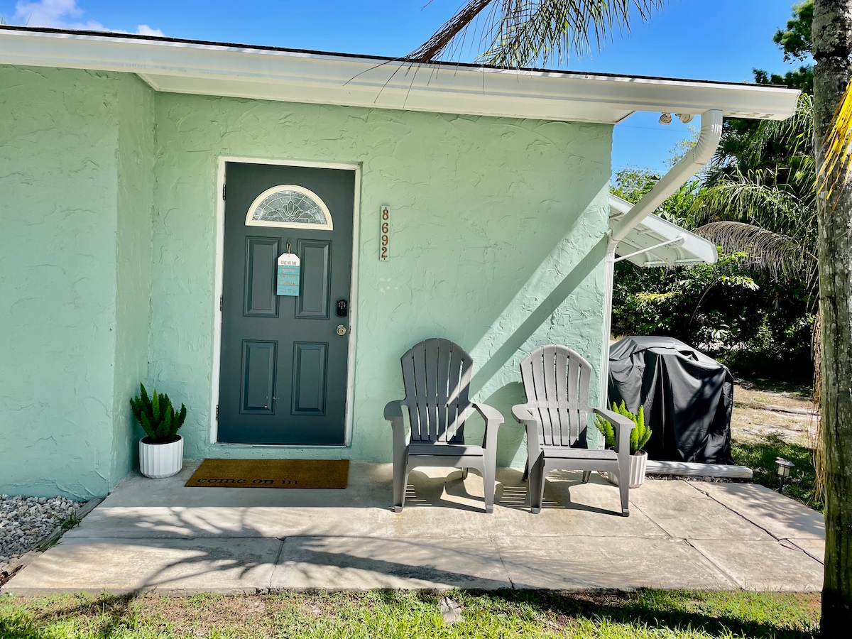 Kurang daripada satu batu dari pantai dan 1/2 batu dari pusat bandar Hobe Sound! Nikmati percutian yang damai di vila pantai yang terletak di pusat bandar ini. Ruang ini bersih, selesa, dan selesa dengan banyak aktiviti yang boleh dilakukan berhampiran termasuk pantai, restoran, galeri seni, membeli-belah, dan kilang bir baharu! Naik basikal dan pergi ke kedai kopi tempatan dalam perjalanan ke pantai melalui terowong pokok Banyan di Bridge Road. Berseronok membeli-belah, makan, bermain golf, atau meneroka di permata tersembunyi bandar ini.