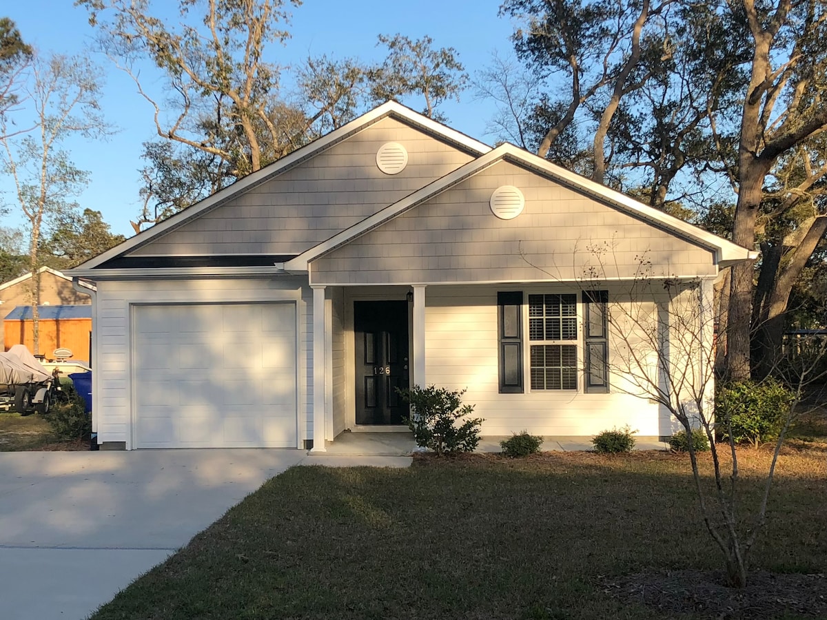 Selamat datang ke Sweet Hideaways di Oak Island! Rumah 3 bilik tidur, 2 bilik mandi ini menampilkan pancuran mandi luar dan halaman berpagar sepenuhnya. Nikmati keperluan pantai seperti kerusi, payung, papan boogie, dan troli gorila untuk perjalanan mudah ke pantai. Mesra keluarga dengan kerusi tinggi, permainan berkemas, mainan, rumah permainan, dan mural tersuai yang menyeronokkan! Hanya 0.7 batu ke pantai dan 1 blok ke ICW. Berjalan kaki ke Middleton Park dan pad percikan dalam beberapa minit! Terletak dengan mudah berhampiran restoran dan kedai.