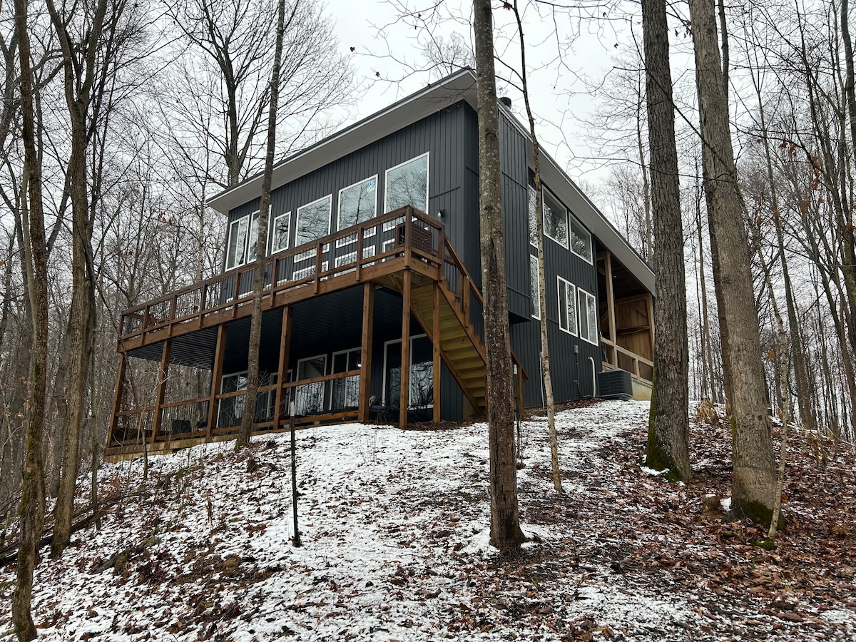 The Treehouse is a perfect retreat! It is secluded by the hills surrounding Madison. Complete privacy, yet 5 minutes from downtown, or hilltop. Year-round views of the beautiful hills of Kentucky. Winter views of the Ohio River and downtown. The house has stunning ceilings made from coastal cedar off an island near Vancouver, British Columbia and beautiful skylights in the studio and indoor pool area. This is an Adults only property. 2-night min.