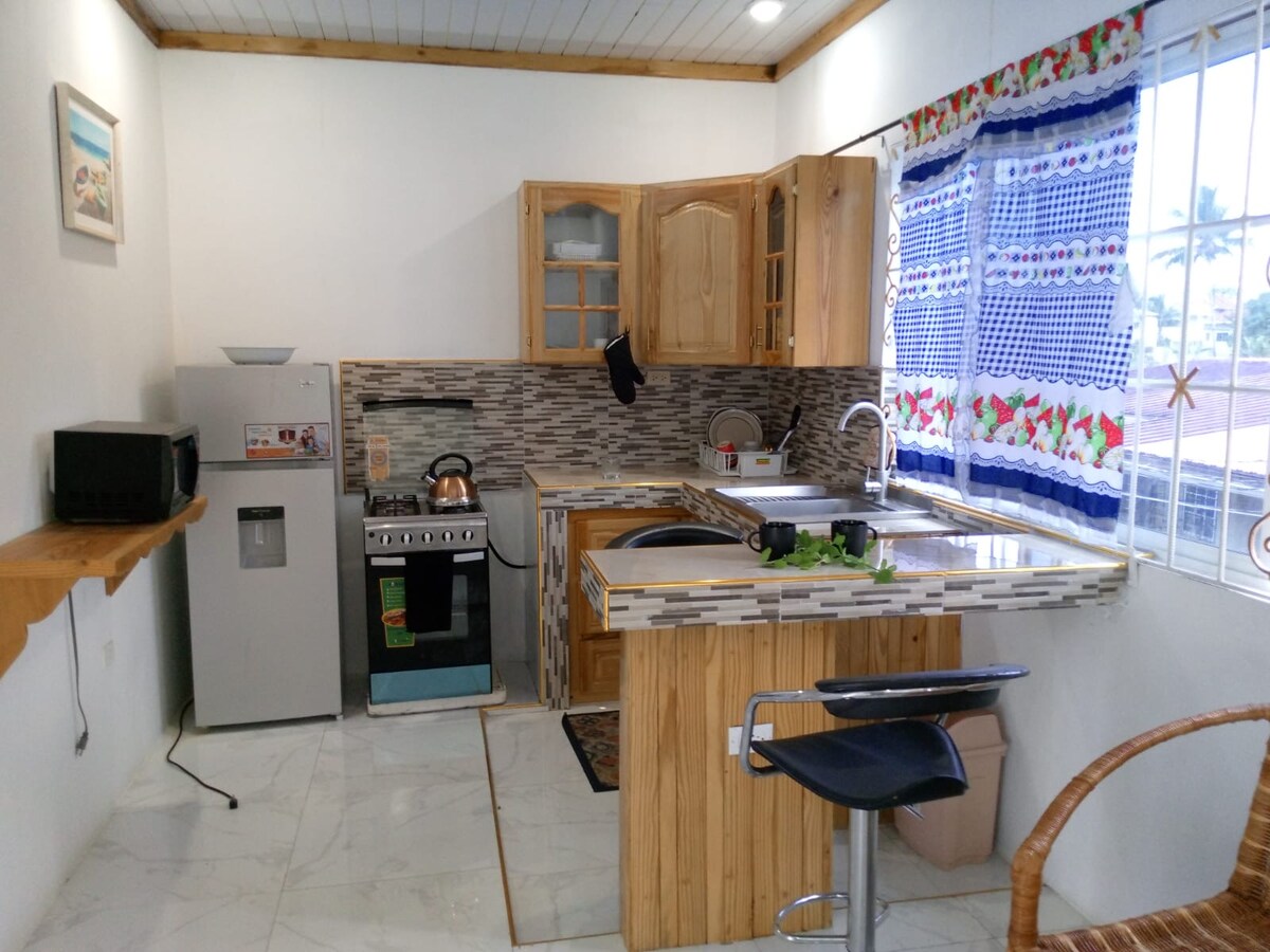 Rumah kami yang indah terletak di bukit-bukit sejuk di Manchester. Ia terletak di kompleks berpagar yang selamat di Ingleside, Mandeville. Walaupun anda berada di sini ketenangan dan ketenangan dijamin kerana kami terletak jauh daripada kesibukan bandar; walau bagaimanapun hanya beberapa minit dari sini adalah Pusat Membeli-belah dan Restoran untuk membeli-belah dan kemudahan makan anda. Rumah ini menampilkan satu bilik tidur king dan futon (katil sofa) untuk tidur satu, 1.5 bilik mandi, dapur, ruang makan dan ruang tamu dengan perabot yang elegan.