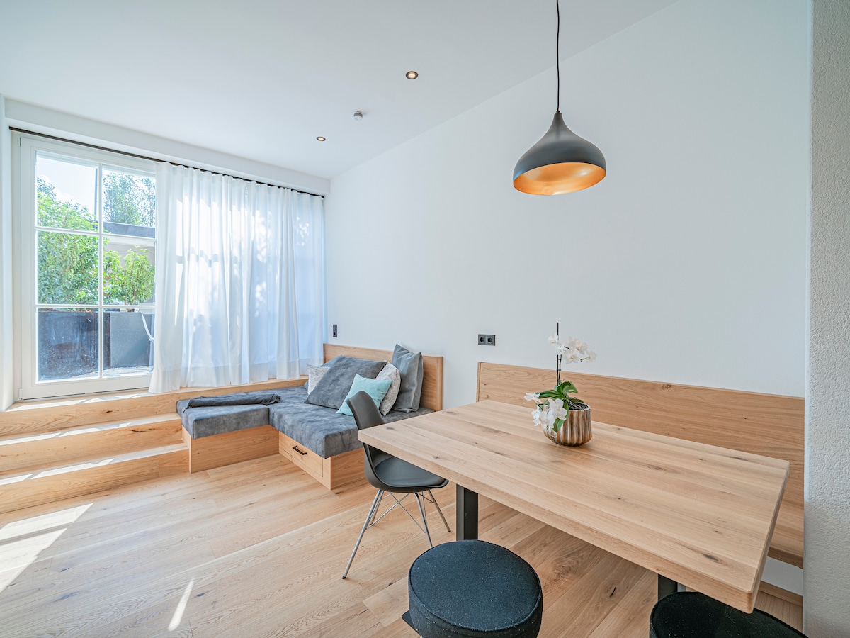 Di Junior Suite dengan kategori pemandangan gunung, anda boleh mendapatkan apartmen melebihi 30m2 untuk sehingga tiga orang dengan katil double bersaiz king dan katil sofa single berkualiti tinggi. Apartmen ini mempunyai dapur lengkap dengan ruang duduk yang selesa, bilik mandi mewah dengan pancuran mandian besar dan mesin basuh-pengering, dan teres 10 m² dengan tempat duduk yang mencukupi untuk sarapan luar yang lazat dengan pemandangan pergunungan Tyrolean yang menakjubkan.