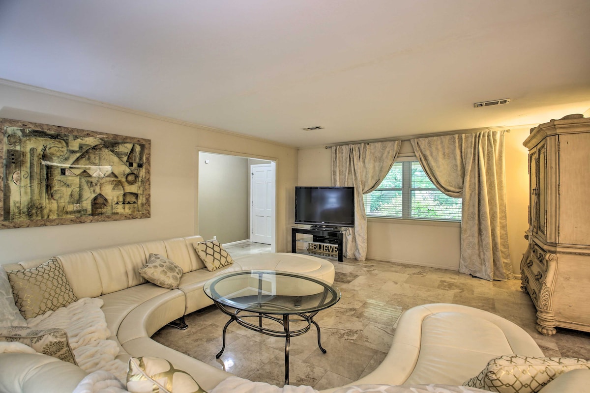 Bawa keluarga dan rakan anda bersama untuk percutian santai di Hot Springs di sewaan percutian 4 bilik tidur dan 2.5 bilik mandi ini! Bahagian dalamannya menampilkan dapur yang serba lengkap, dua ruang tamu besar, perabot mewah, dan lantai marmar. Melangkah keluar, dan anda akan disambut dengan tab mandi air panas persendirian untuk berendam dan halaman berpagar untuk diterokai oleh haiwan peliharaan anda. Nikmati akses mudah ke tarikan popular seperti Hot Springs National Park, Oaklawn Racing Casino, Magic Springs Theme And Water Park, dan banyak lagi!