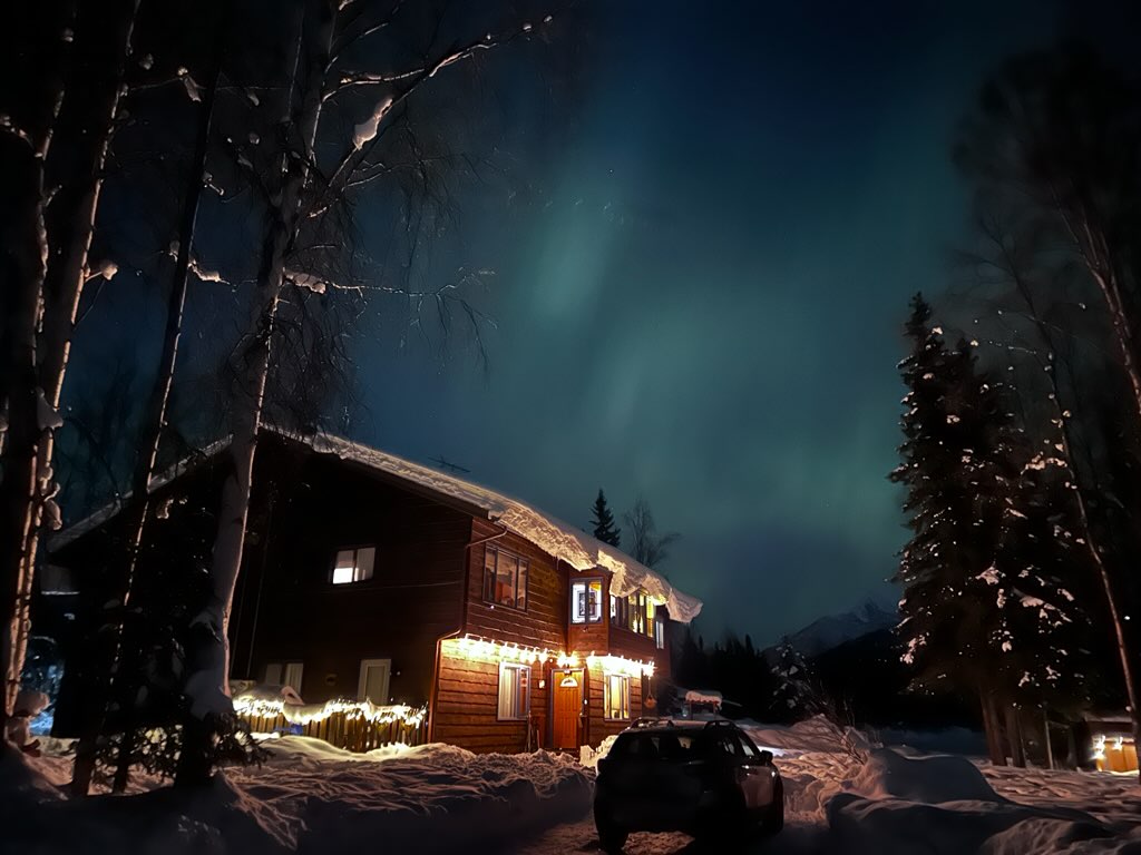 15 batu ke utara Anchorage penginapan kami adalah 4 ekar tanah hutan dengan pemandangan gunung-ganang dan lawatan yang kerap dari hidupan liar Alaska. Kami tinggal dalam jarak 5 batu dari 7 tasik akses awam yang berbeza & berada di antara Anchorage & Lembah Matanuska Susitna. Terdapat tempat letak kereta tambahan di luar jalan untuk bot dan/atau RV.