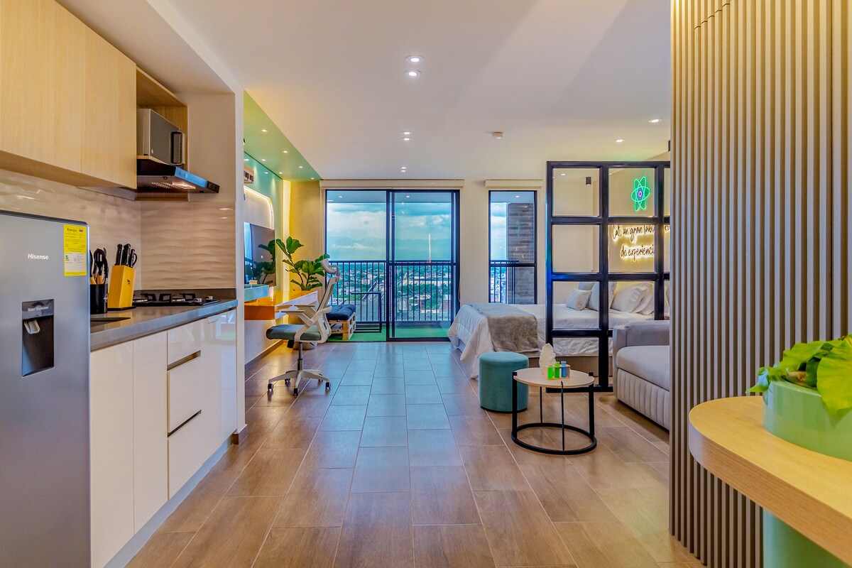 Terletak di kawasan yang tenang dan pusat bandar berhampiran Parque del Perro dan klinik, ruang Japandi ini telah direka dengan teliti untuk menawarkan kepada anda tempat perlindungan yang tenang di mana minimalisme Jepun bertemu dengan kehangatan dan fungsi Nordic. Ia mewujudkan suasana santai sepenuhnya. Berehat, bekerja, atau bersantai dengan sempurna dengan Jacuzzi di kawasan umum. Keseimbangan ideal di Cali untuk kesejahteraan anda yang lengkap!