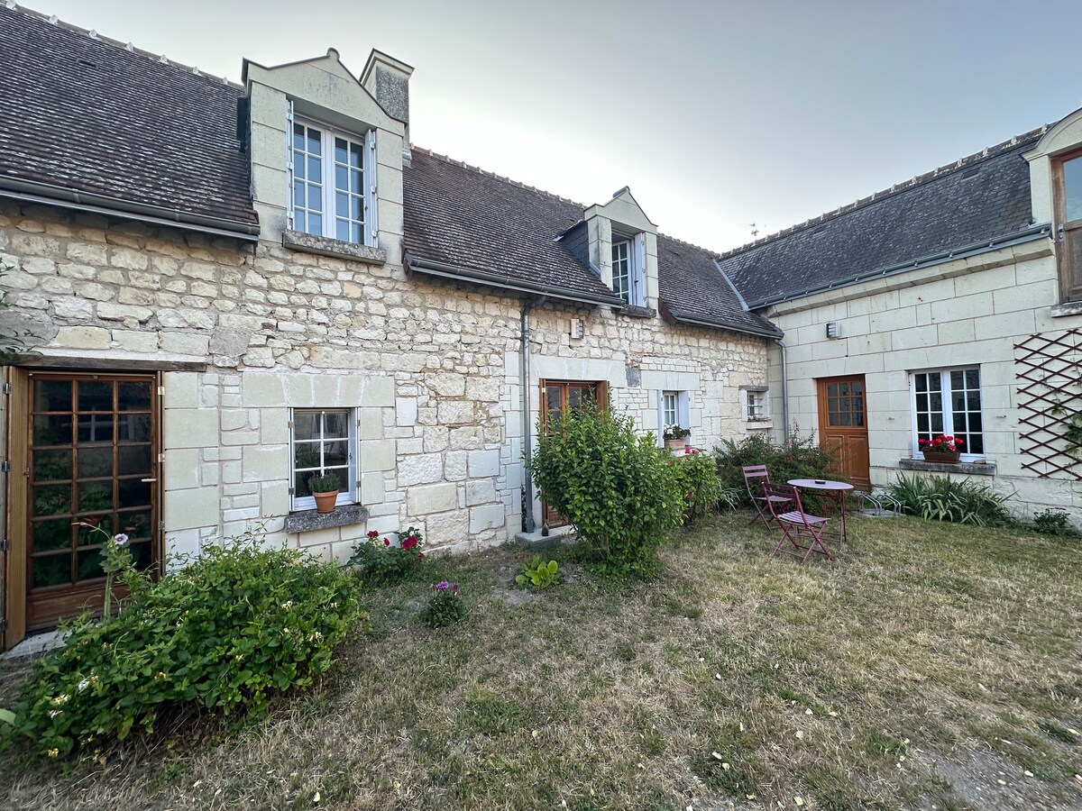 Penginapan kami terletak di tengah-tengah istana Loire, ladang anggur Chinonese, dan di kaki Loire dengan berbasikal. Kotej ini terletak di tengah-tengah kampung, di mana anda akan menemui kedai roti, kedai daging, kedai runcit dan bistro. 10 minit dari Chinon 30 min dari Tours Ketenangan dan kesederhanaan meringkaskan tempat ini. Ia termasuk bilik utama dengan dapur terbuka. Di tingkat atas, bilik mandi dengan tab mandi, tandas, bilik dengan 140 katil dan bilik tidur kedua dengan dua katil bujang