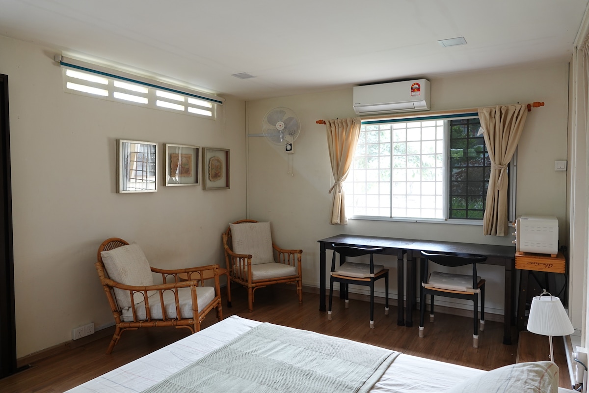 Suite persendirian yang baru diubahsuai dan unik dengan halaman dalaman persendirian mini anda sendiri! Terletak di kawasan perumahan hanya 10 minit memandu ke pusat bandar Kuala Lumpur. - 10 minit berjalan kaki ke LRT Jelatek (Laluan Kelana Jaya) - 10 minit menaiki kereta api ke KLCC - Akses kepada WiFi - 2 bilik tidur bersama unit penyaman udara - 1 bilik mandi (pancuran mandi air panas, tandas, rak tuala dan tuala) - Ruang tamu dengan pintu kaca gelongsor, TV, sofa, dapur dan ruang makan