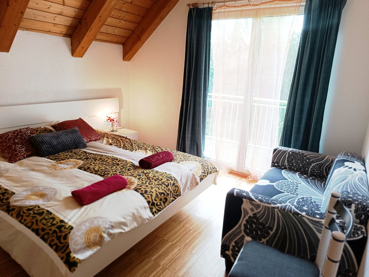 Apartmen tingkat bawah dengan teres untuk berasa selesa. Apartmen untuk 5 orang ini mempunyai dua bilik tidur, kawasan pintu masuk yang selesa, bilik mandi moden dengan pancuran mandi serta ruang tamu dan ruang makan yang luas. Dapur terbina dalam ini serba lengkap sepenuhnya. Perabot yang baru dilengkapi dengan perabot moden dan beberapa pusaka. Teres matahari dengan pemandangan di kawasan desa adalah kemuncak mutlak. Tempat permulaan yang selesa untuk penemuan di Basel dan South Baden dengan trafik dan tempat letak kereta terbaik di hadapan rumah.