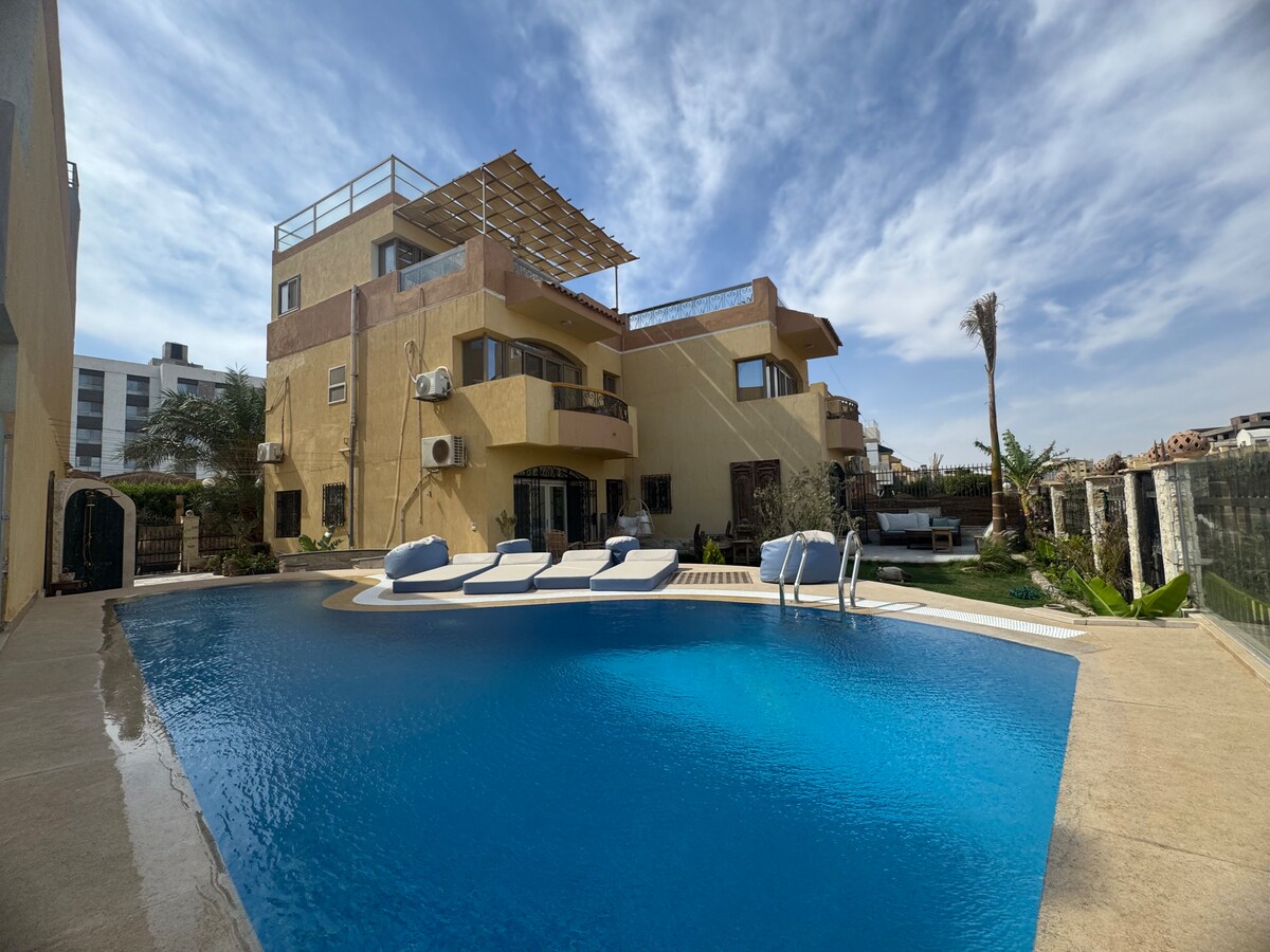 Tempat percutian yang ideal untuk meneroka dan menikmati El Gouna, Laut Merah dan Mesir. Sama ada untuk melepaskan diri daripada kehidupan bandar yang sibuk atau menikmati semua Laut Merah dan bandar El Gouna yang meriah, vila 4 bilik tidur kami akan menyediakan percutian yang sempurna untuk keluarga dan rakan-rakan anda. Setiap bilik tidur mempunyai bilik mandi bersambung dengan pancuran mandi atau tab mandi. WIFI kelajuan tinggi, tempat letak kereta persendirian, ruang tamu pelan terbuka dan dapur lengkap yang besar, taman persendirian yang besar dan teres dengan kolam renang persendirian yang dipanaskan, jakuzi, meja urut