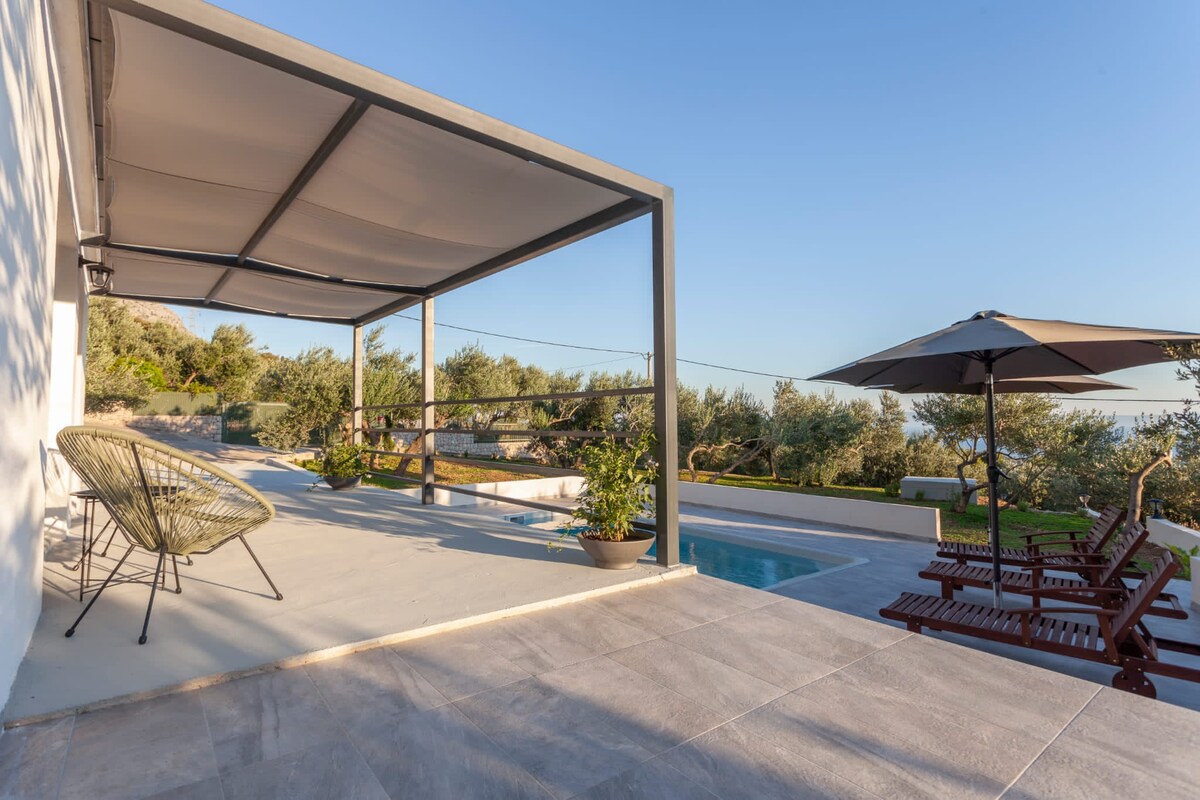 Rumah percutian batu terletak di tempat terpencil di ladang zaitun. Sesuai untuk percutian yang tenang. Rumah ini dilengkapi dengan panel solar dan dandang solar dan penggunaan peralatan rumah yang merupakan pengguna besar tidak disarankan. Penginapan yang selesa dengan dua bilik tidur, ruang tamu, dapur dan bilik mandi. Di halaman terdapat pemanggang, pancuran mandi luar dan kemudahan untuk kanak-kanak. Teres mempunyai pemandangan yang indah ke arah kebun zaitun dan laut.