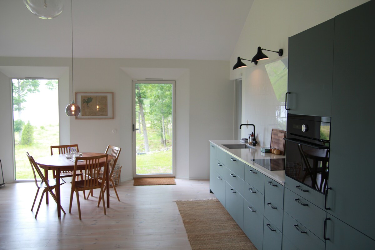 Modernt hus i nordisk design med privat sjöläge