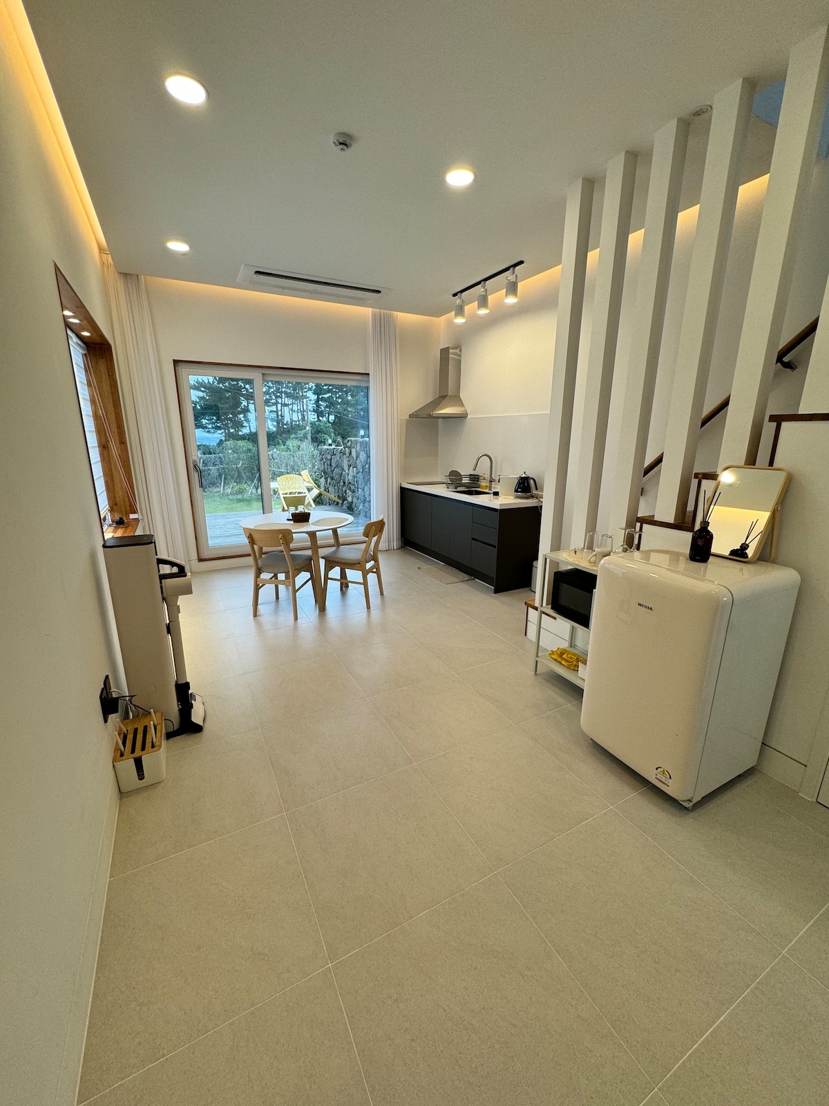 Terletak di Wimi Coastal Road, Wimiri, Seogwipo, Wimi Gras adalah penginapan tepi laut yang beremosi dengan pemandangan laut yang indah menghadap Jigwido dari pantai di Pantai Batu Hitam, ketenangan di hujung perkampungan nelayan, dan perasaan vila unik yang dibina dengan rumah batu Jeju. Anda boleh melihat pantai unik dan indah Wimi Beach sekilas pandang di semua ruang, seperti ruang tamu, semua bilik dan taman. * Struktur dan kemudahan * Rumah ini mempunyai sejumlah 3 bilik dan setiap bilik mempunyai singki tandas pancuran mandi Tingkat satu terdiri daripada bilik dengan katil dan bilik tatami dengan tilam, dan terdapat meja makan untuk sehingga 6 orang di ruang tamu dan dapur, dan LG Standby Me.Terdapat peti sejuk bersaiz sederhana, ketuhar gelombang mikro, cerek elektrik, dll. Tingkat dua ialah katil bujang dalam bentuk bilik tidur dan ruang tamu. Dengan sofa, TV, dsb. Ia dihiasi. Anda boleh merasai pemandangan Pantai Wimi dari balkoni. Taman penginapan dibahagikan kepada dua halaman, dan terdapat halaman di hadapan penginapan dan halaman bunga dan tumbuh-tumbuhan yang lebih rendah.