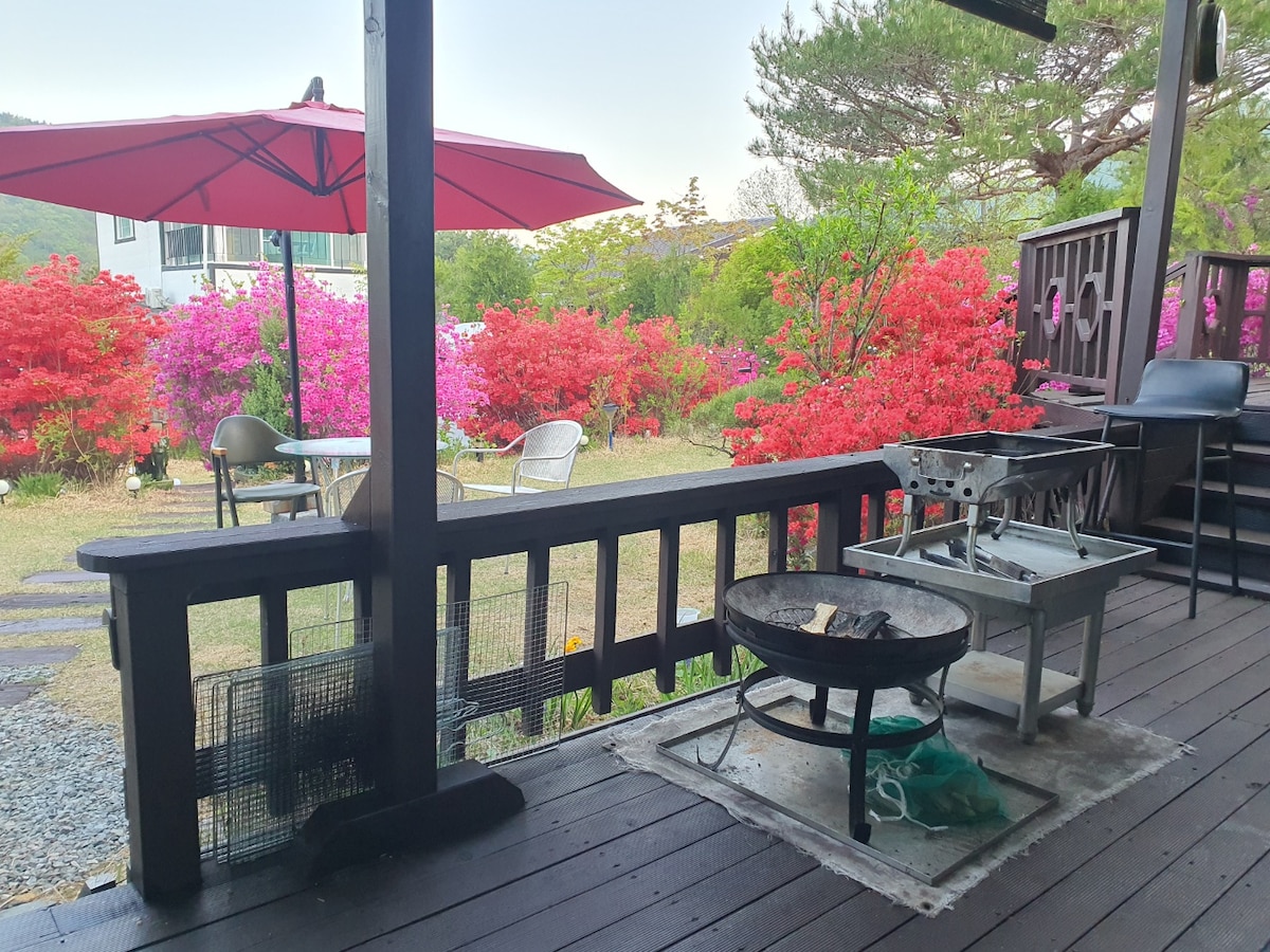 [Koma] Penginapan dengan pencahayaan yang baik/Netflix/Projektor/BBQ/Perapian/Penapis air sejuk/Horseong Lake Road/Tiada yuran