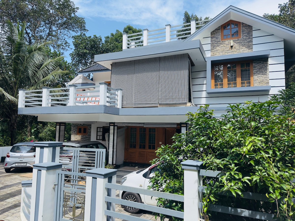 Dua ruang tamu berperabot lengkap, meja makan, dapur berperabot dengan peralatan, Peti sejuk, M/gelombang, W/mesin, pembakar roti, cerek +), Wi-Fi/Internet/55” TV, Inverter, BR 3well-furnished dengan bilik mandi bersambung, AC, kabinet/meja solek, Kolam Renang, dua pintu masuk/muka ke beranda kereta tingkat satu, banyak ruang letak kereta di dalam kompaun & kamera TV ZZ 24 jam, dll. Penginapan yang damai untuk Pelancong, Pelawat & Acara Tempatan pada kos yang berpatutan yang terletak di Muthalakodam berhampiran dengan bandar Thodupuzha.