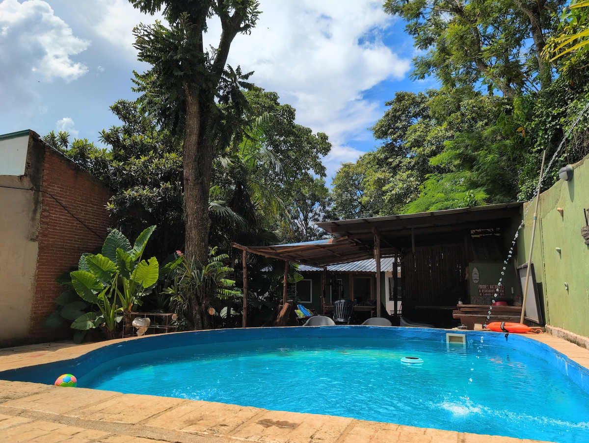 Selamat datang ke Green Hideaway — percutian hutan hujan anda yang damai hanya beberapa minit dari pusat bandar Iguazú. Terletak di kejiranan yang tenang dengan kehijauan yang subur, rumah yang cerah ini menawarkan yang terbaik daripada kedua-dua dunia: alam semula jadi dan kemudahan. Anda akan bangun dengan kicauan burung, menikmati kopi di patio yang dikelilingi oleh tumbuh-tumbuhan tropika, dan berjalan kaki hanya beberapa minit ke restoran, kedai, dan bas ke Iguazú Falls. Hanya dua blok dari bas utama ke Air Terjun Iguazú dan lapangan terbang.