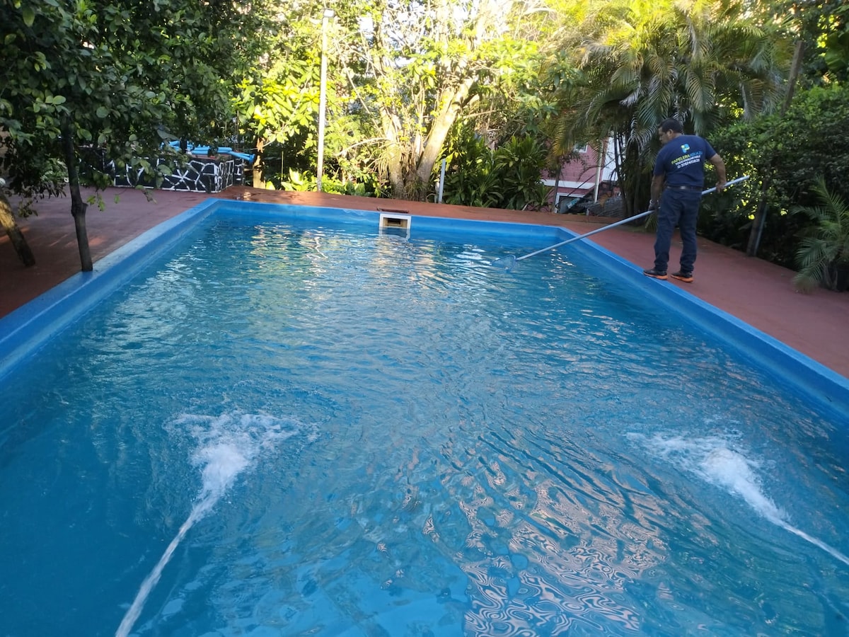 Rumah yang cantik dan luas, sesuai untuk keluarga, pasangan dan kumpulan. Terletak hanya 300 meter dari pusat Puerto Iguazú, beberapa meter dari Av utama. Victoria Aguirre di mana kebanyakan kedai, restoran, farmasi dan pasar raya terletak. Anda akan menyukai penginapan saya kerana ruang, privasi, privasi dan keselamatannya yang luas. Ia adalah tempat yang sesuai untuk berehat, berkongsi dengan keluarga atau rakan-rakan dan menikmati aktiviti luar, kami mempunyai taman yang indah, patio dengan quincho dan kolam renang .