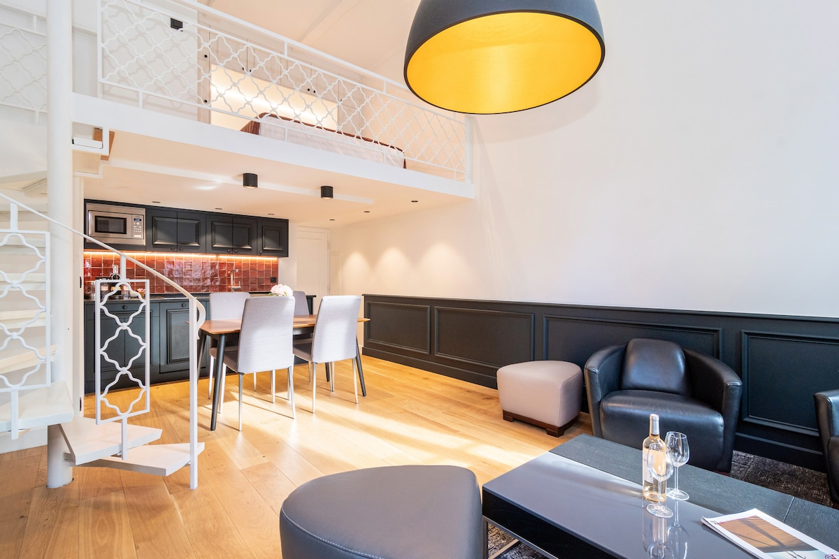 Loteng reka bentuk terang pusat 5 minit ke pantai Croisette