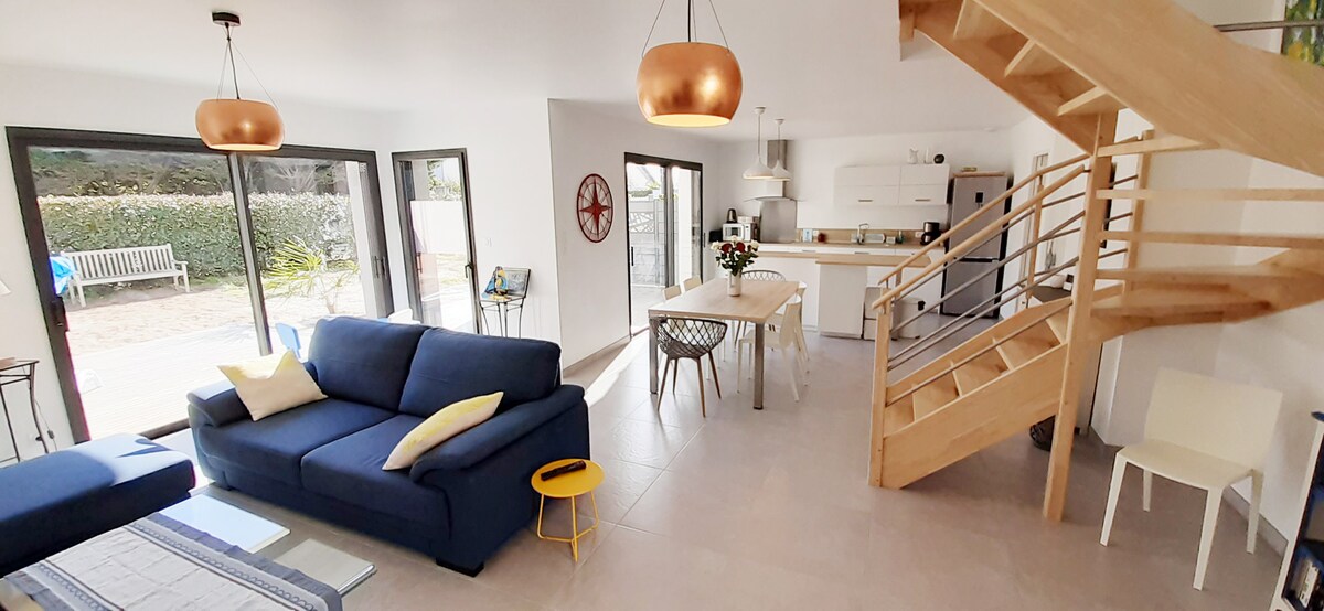 Rumah menawan, 200m dari pantai. Rumah cantik ini mengalu-alukan anda di kawasan perumahan yang sangat tenang berhampiran dengan pantai. Anda akan menemui semua keselesaan yang diperlukan untuk menghabiskan percutian yang hebat dan menikmati semenanjung kami dan pantai berhampiran dengan pelbagai aktiviti nautika dan berjalan-jalan di pantai. Berhampiran anda akan menemui pelbagai kedai (kedai runcit, bar, restoran Penginapan buatan sendiri penginapan 3*