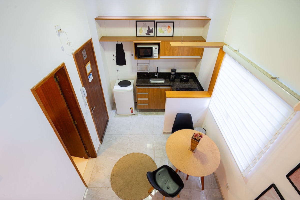 Studio yang selesa di Ilha da Gigóia yang menawan, salah satu tempat pelancongan yang paling banyak dilawati di Rio de Janeiro! Hanya 5 minit dari pantai, restoran utama dan bersebelahan dengan kereta api bawah tanah, ia menawarkan akses mudah ke seluruh bandar. Nikmati iklim pulau yang tenang, dikelilingi oleh alam semula jadi dan lawatan bot yang menawan. Sesuai untuk mereka yang mencari keselesaan, kepraktisan dan pengalaman unik di RJ.