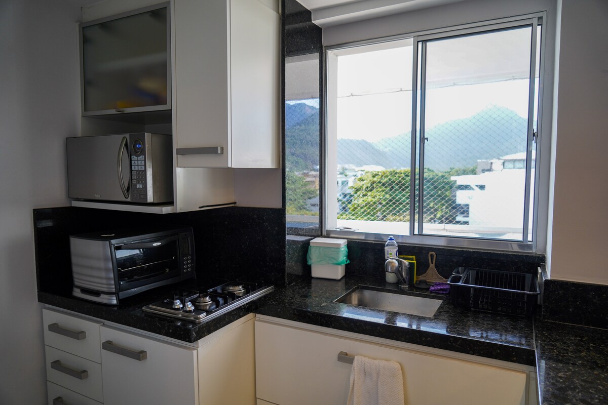 Apartmen tepi laut minimalis dan elegan, baru diubah suai, dengan pemandangan Pantai Barra da Tijuca dan Pedra da Gávea yang menakjubkan. Bilik tidur utama dengan katil bersaiz King dan hiasan moden. Kemudahan kondominium penuh termasuk kolam renang, jakuzi, sauna, gimnasium, restoran, pengecas kereta elektrik dan keselamatan 24 jam. Hanya 5 minit berjalan kaki ke restoran, farmasi, salon kecantikan, Olegário Maciel, Kitesurfer Point, dan Pepê Beach. Wi-Fi, TV pintar, pendingin hawa, dan mesin basuh & pengering. Penginapan yang tidak dapat dilupakan.