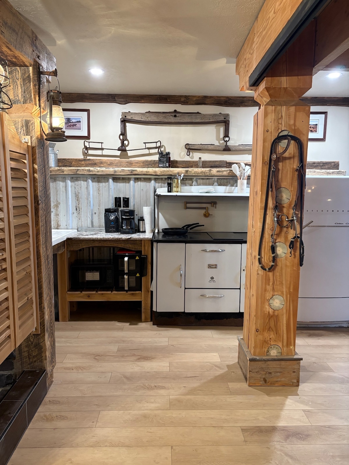 The Cowboy Suite is a thoughtfully designed retreat with rustic charm, just minutes from Waterton. Whether you’ve been adventuring or simply escaping it all, this cozy space invites you to slow down and unwind. Inside, you’ll find cozy comforts and warm details. After a day of exploring, settle in for a movie night on your own projector screen. A rainfall shower adds a calming rhythm, making even quiet moments feel restorative. This is a place to pause, relax, and truly escape.