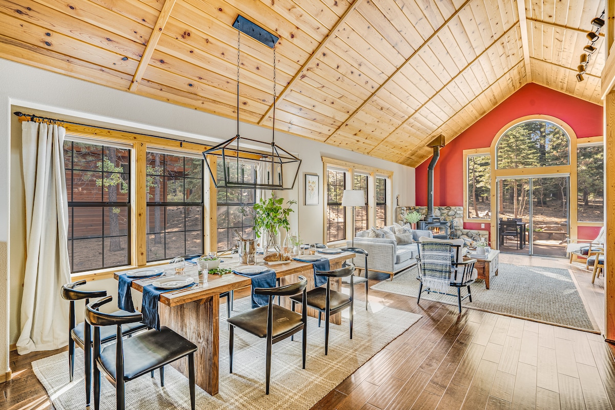 The Chickaree Mountain Retreat is our lovingly cared for 1965 A-frame with the classic architecture we know and love. The A-frame features two upstairs bedrooms, a darling kitchen, and a comfortable living room warmed by an inviting gas fireplace. Make lasting memories during any season with your family or friends. With the Serene Lakes and Royal Gorge trails only a few blocks away and five ski resorts within short driving distance, the CMR sets you up for an adventurous Sierra getaway!