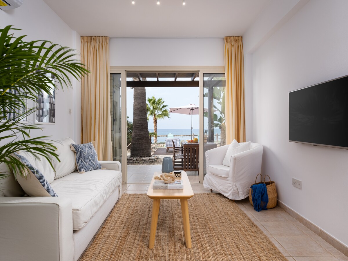 Apartmen ini terletak di kawasan desa yang indah, dikelilingi oleh dusun oren dan pokok zaitun, kira-kira separuh jalan antara Paphos dan Polis. Walaupun terletak tidak jauh dari B7, ia sunyi dan terpencil. Dengan pintu masuk persendirian, satu bilik besar (26 meter persegi, tiada DAPUR) mengandungi katil raja, sofa (boleh ditukar menjadi katil sofa double) dan ruang laci yang luas. Bilik mandi en suite yang besar dan mewah terdiri daripada tab mandi dengan pancuran mandi atas kepala, serta pancuran mandi berasingan.