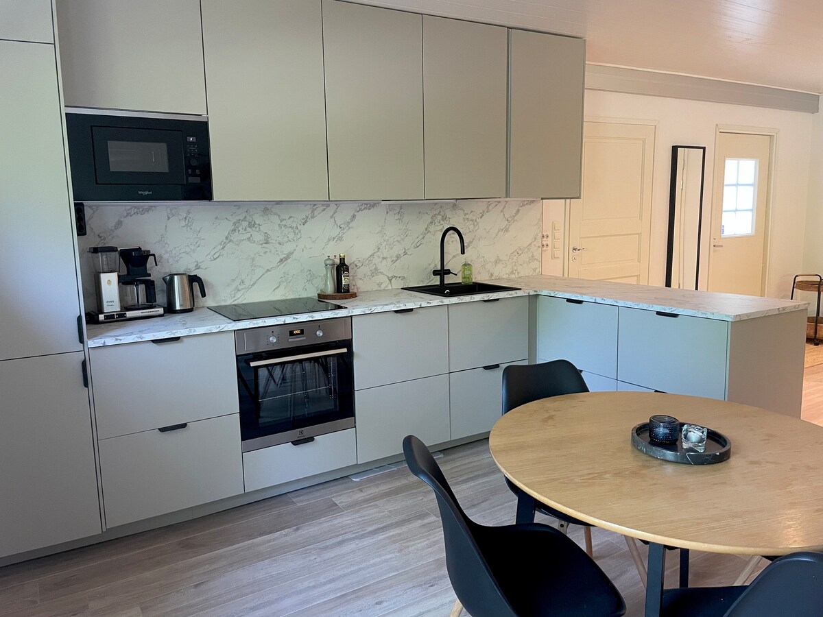 Apartmen ini terletak di lokasi yang tenang di tengah-tengah alam semula jadi, betul-betul di sebelah laut. Apartmen yang luas ini baru sahaja diubah suai dan dilengkapi dengan baik. Terdapat peluang untuk makan, bersantai dan berehat di dek besar. Kawasan dek mempunyai gril, kerusi berjemur, sauna dan banyak lagi. Duckwood yang meninggalkan dek melalui hutan ke pantai berbatu dengan lubang api, jengkal dan dok, dan bot kayuh. Di halaman, kami mempunyai ayam serta trampolin dan permainan halaman.