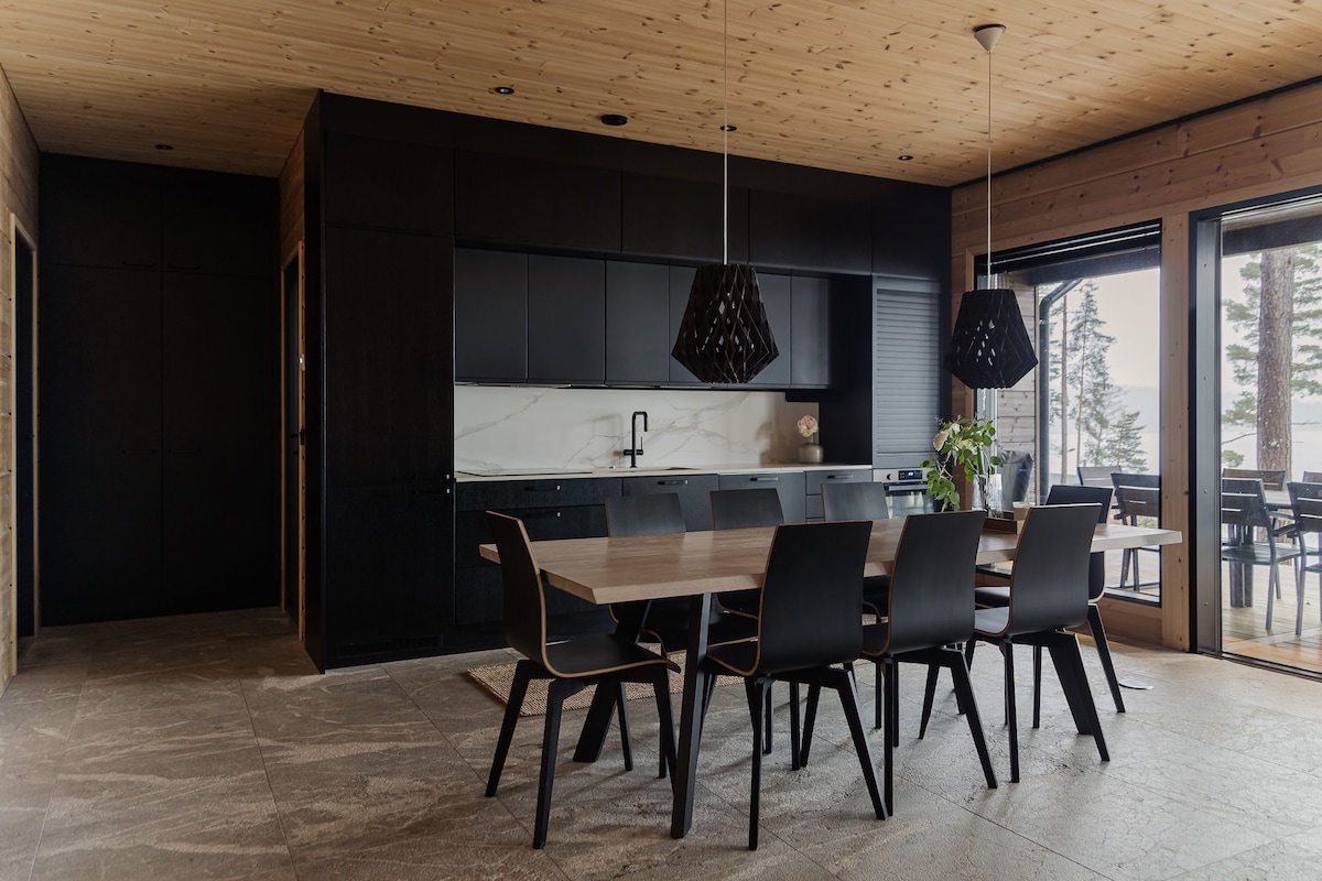 Selamat datang untuk berehat di pondok moden yang baru dibina, dengan tingkap besar yang membuka pemandangan yang indah di atas padang! Dalam hutan di sekitar pondok anda boleh berjalan-jalan, mencari cendawan dan buah beri, dan satu kilometer jauhnya adalah Tasik Gölen yang indah. Kotej ini terletak berhampiran dengan kilang Billnäs, dan juga perkampungan kilang Fiskars dengan restoran dan kedai-kedai di dalam jarak berbasikal. Sauna tradisional yang dipanaskan dengan kayu, yang boleh digunakan secara percuma oleh penyewa, menawarkan wap yang dalam dan lembap.