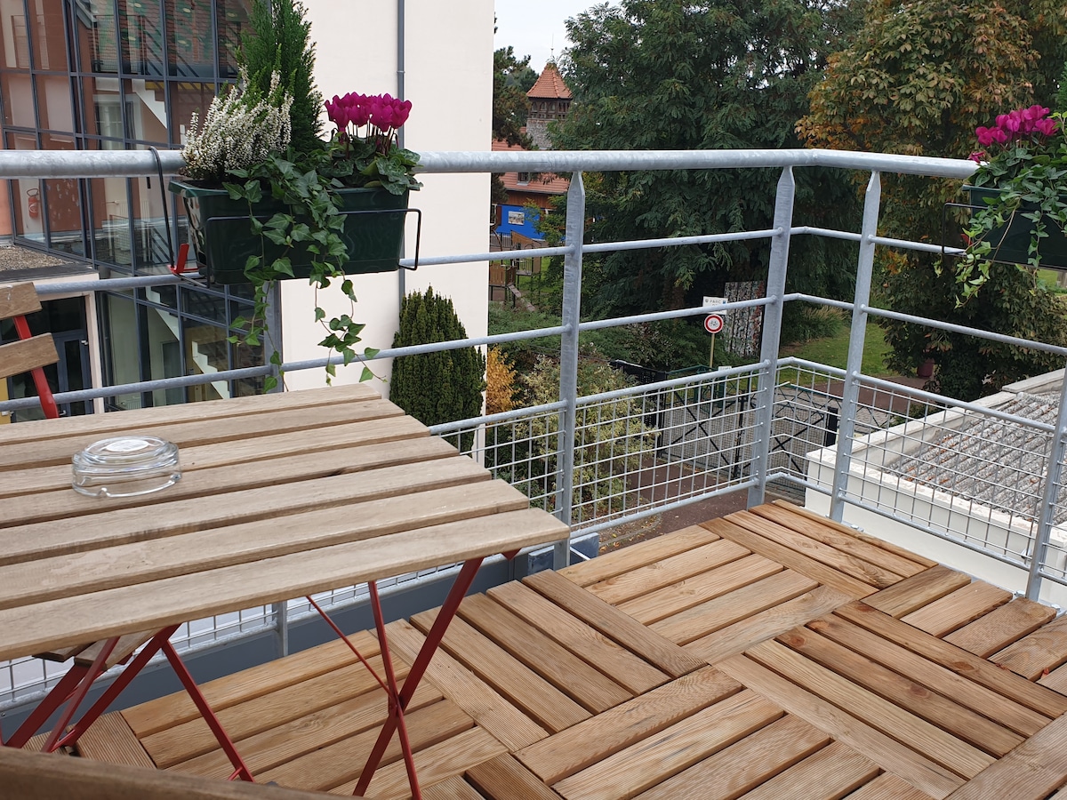 Studio seluas 29m2. Berhampiran dengan pusat bandar Colmar dan laluan wain Alsace. Ruang ini termasuk keperluan asas untuk membuat anda berasa selesa seperti di rumah sendiri: - Televisyen, WiFi - katil kelamin dengan cadar - katil sofa dengan cadar (di dalam bilik yang sama) - bilik mandi dengan tuala - dapur berasingan yang dilengkapi dengan ketuhar gelombang mikro, peti sejuk, mesin kopi, cerek... Balkoni dengan meja dan kerusi tersedia untuk menikmati cuaca yang indah. Pintu masuk berautonomi oleh sistem kotak kunci.