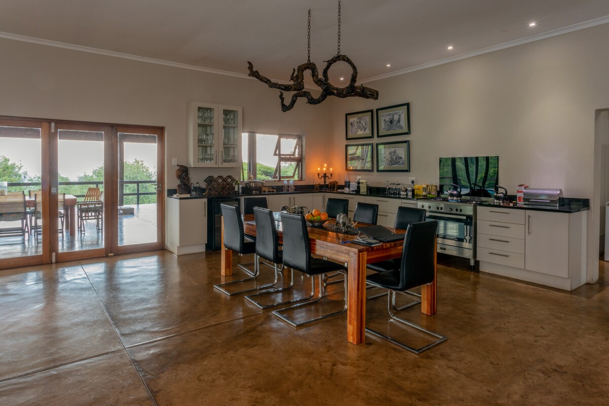 Vila mewah bergaya paling elegan yang terletak di tengah-tengah Rizab 4 besar di tebing Empangan Jozini. Ruang kegunaan eksklusif ini dilengkapi dengan chef persendirian untuk memasak semua makanan anda, 2 panduan persendirian untuk memandu permainan, berjalan-jalan di belukar berpandu & pelayaran bot tigerfishing terkenal kami. Dengan pemandangan yang luar biasa dari semua 5 bilik tidur & bilik mandi mewah. Dengan ruang tamu luaran yang glamor untuk makan tengah hari di ruang terbuka dengan pemandangan yang paling memukau & kolam renang yang cantik. Percutian safari mesra keluarga sebenar.
