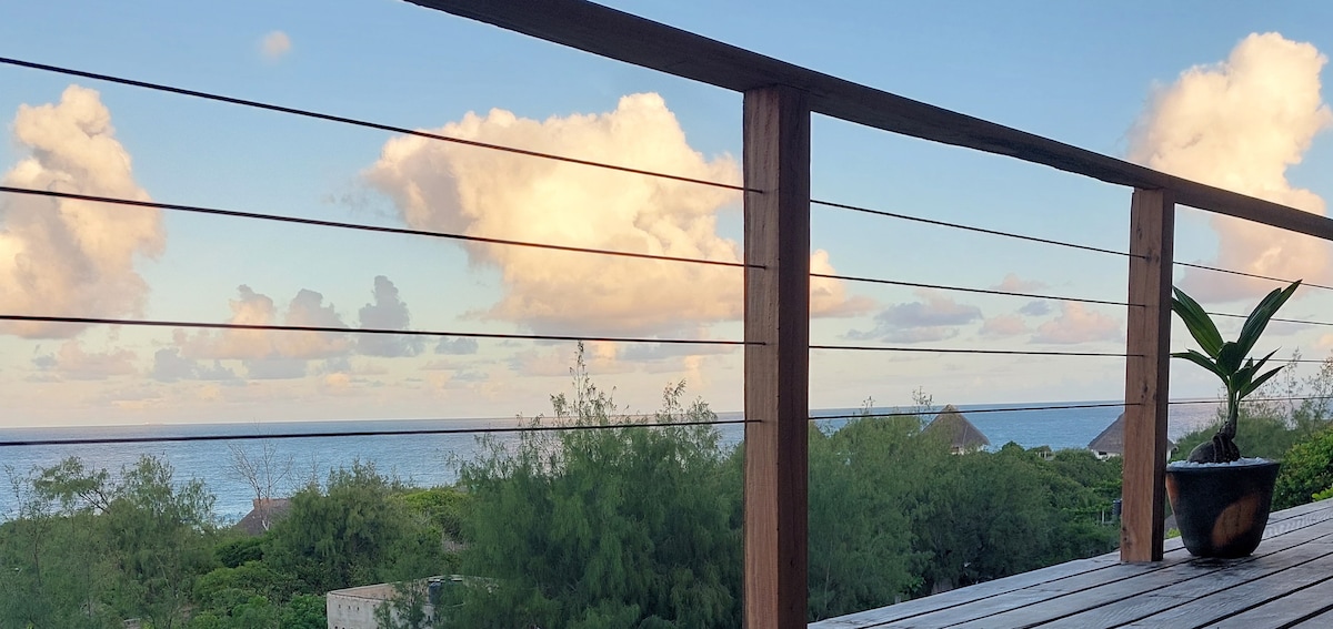 Pemandangan Tofo yang terbaik! Terletak di atas Dune, anda boleh menikmati kopi/teh pagi anda dari privasi beranda anda sendiri, dan menarik nafas anda dengan pemandangan menakjubkan 180° ini. Dari setiap bahagian rumah anda akan menikmati pemandangan terbuka dengan kehijauan savanna yang berubah perlahan-lahan menjadi biru laut berwarna firus di Lautan Hindi. Rumah terbuka yang dibina ini mudah, tetapi bergaya dan mempunyai banyak perkara untuk ditawarkan. Tempat yang sesuai untuk pasangan atau keluarga kecil yang menikmati ketenangan dan privasi.
