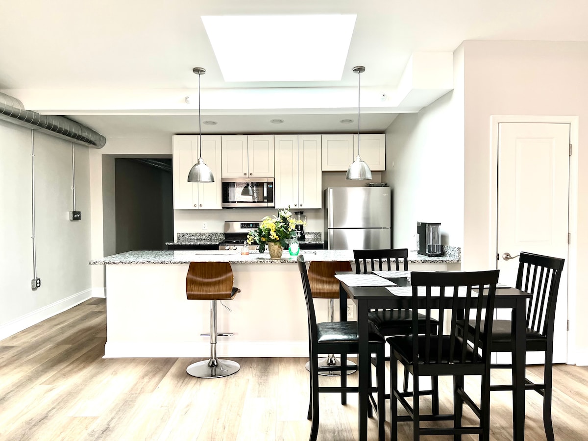Hanya beberapa langkah dari Inner Harbor Baltimore, Fells Point, Little Italy, dan John 's Hopkins Hospital, apartmen bilik tidur yang serba lengkap ini mempunyai segala yang anda perlukan! Unit moden dan kontemporari di dalam salah satu rumah baris bersejarah Baltimore (dibina 1850) menampilkan siling tinggi dan tingkap lantai hingga siling yang cantik. Apartmen ini termasuk dapur penuh, bilik mandi penuh, satu bilik tidur dengan ruang pejabat, ruang tamu dengan TV HD dan katil sofa, dan mesin basuh/pengering dalam unit. Basikal juga tersedia untuk digunakan!