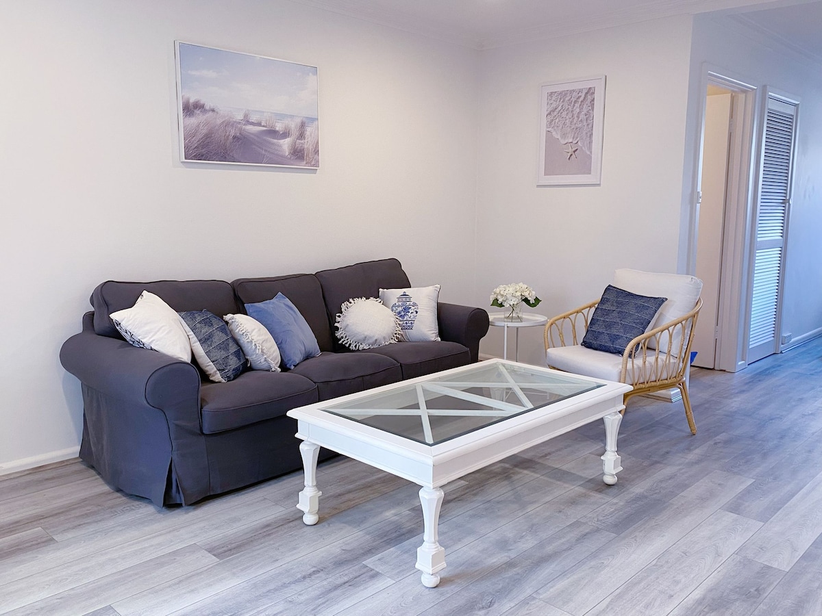 Nikmati penginapan anda di tempat percutian musim panas atau musim sejuk yang selesa ini. Dilengkapi dengan suasana moden Scandi, suite serba lengkap ini terletak di tempat kos yang dibarisi pokok. Berhampiran dengan keseronokan dan keperluan tempatan. 5 minit berjalan kaki ke pantai meluncur yang indah, bandar, restoran dan kedai. Kelas sewaan dan kemewahan yang moden dan dipenuhi cahaya ini. “Suasana hotel” yang bergaya dan selesa untuk tidur 5. Haiwan peliharaan dialu-alukan di dalam. Tanggungjawab itu milik anda. Eksklusif dan damai. Kami tidak sabar untuk mengalu-alukan anda.