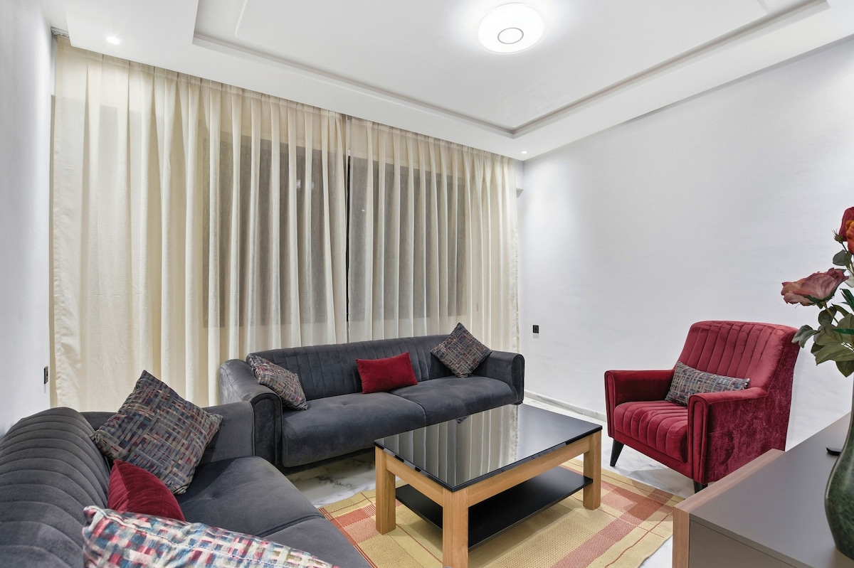 Welcome to this charming abode where modern design meets warmth. Thoughtfully curated with elegant details, soothing colors and a subtle Moroccan touch, this apartment offers the perfect balance between style and relaxation making it ideal for families or couples seeking comfort and tranquility. Located in a clean, newly built residential complex just a 5-minute walk from the Beach and Marina, this apartment offers the perfect balance of comfort and location for relaxing or exploring Agadir.