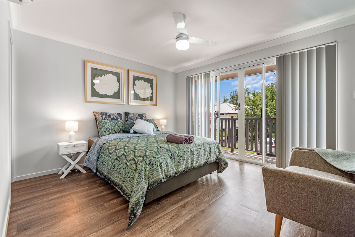 Ruang yang luas & tenang ini yang hanya 15-20 minit menaiki kereta ke Brisbane City! Apartmen ini dihiasi dengan menarik & secukupnya untuk digunakan sebagai pangkalan kepada pengembaraan anda di sekitar Brisbane. Ia mempunyai dua kawasan tertutup di luar yang menjadikannya ruang yang indah untuk berehat dalam ketenangan kehijauan di sekeliling anda. Dapur adalah dapur kecil tetapi mempunyai dapur, peti sejuk dan penyejuk beku. Perlu diingat bahawa AirBnB ini mempunyai dua set tangga untuk mendapatkan akses. Tangga dinyalakan pada waktu malam dengan penderia pergerakan.