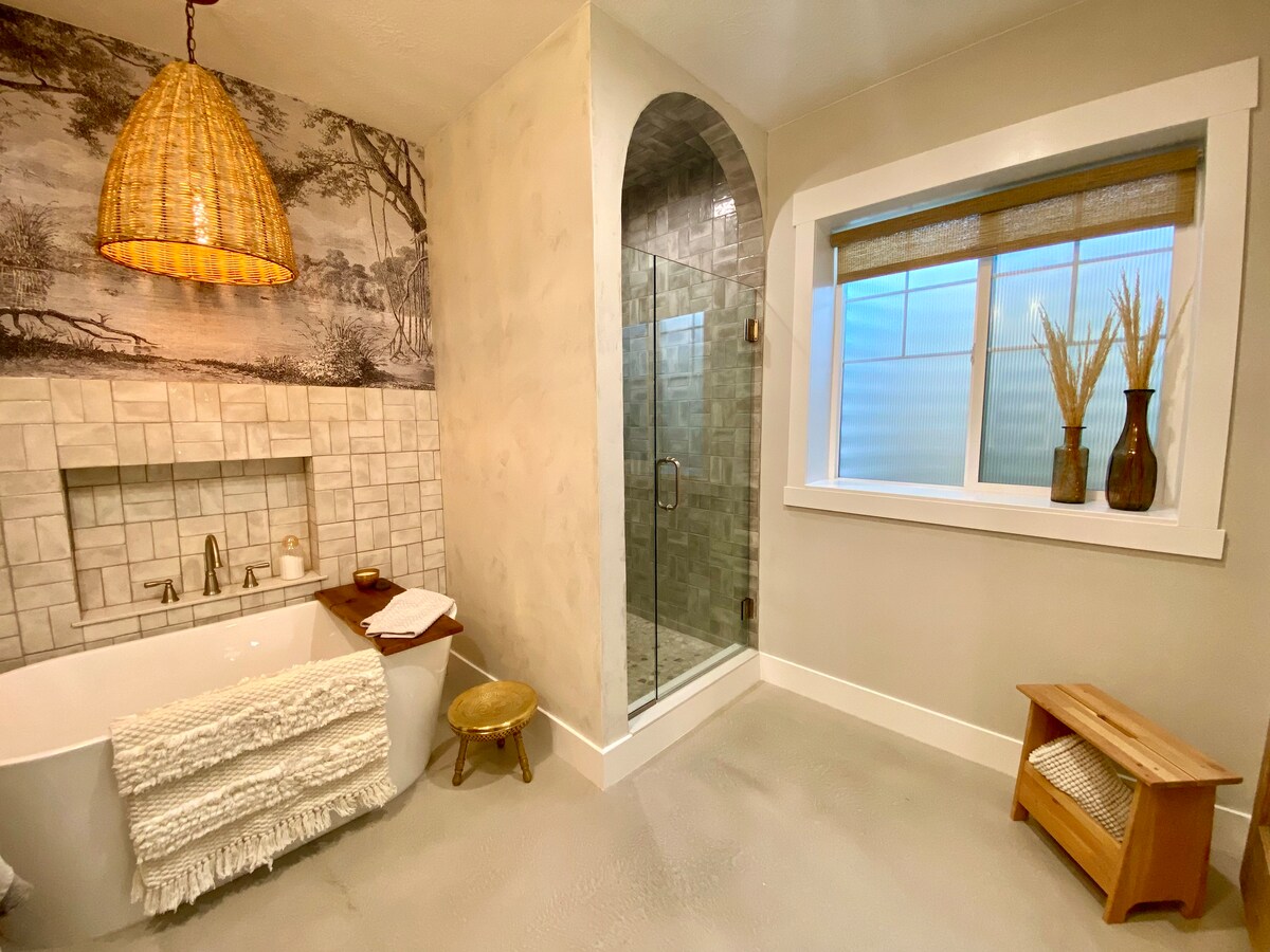 Bersantai ke tahap baharu di rumah tetamu kami yang baru dibina! Binaan baharu dengan semua kemudahan yang anda perlukan untuk percutian yang tenang. Ruang kami yang sangat menarik dari segi estetika bertujuan untuk 2 orang berehat dan mendapat inspirasi. Tempat perlindungan anda sendiri. Ruang tamu+ruang makan+dapur konsep terbuka. Bilik tidur yang luas dengan bilik mandi spa en suite. Lengkap dengan tab berendam & pancuran mandi berjubin artisan tertutup. Percutian istimewa yang dicipta untuk dinikmati oleh semua yang memerlukan rehat daripada kehidupan seharian.