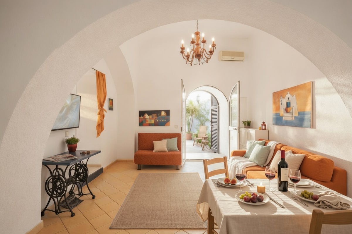 Rumah percutian yang ringkas dan elegan yang terletak di Via Marina di Corricella, sebuah perkampungan nelayan ciri yang kini menjadi tapak warisan UNESCO, yang terkenal kerana menjadi hos filem terkenal The Postcard. Rumah yang menawan, cerah, sesuai untuk bujang dan pasangan, mempunyai dua bilik tidur double dengan bilik mandi peribadi berperabot halus dan dilengkapi dengan semua keselesaan, ruang tamu besar dengan dapur lengkap yang menghadap Corricella sentiasa memberikan pemandangan yang menakjubkan.