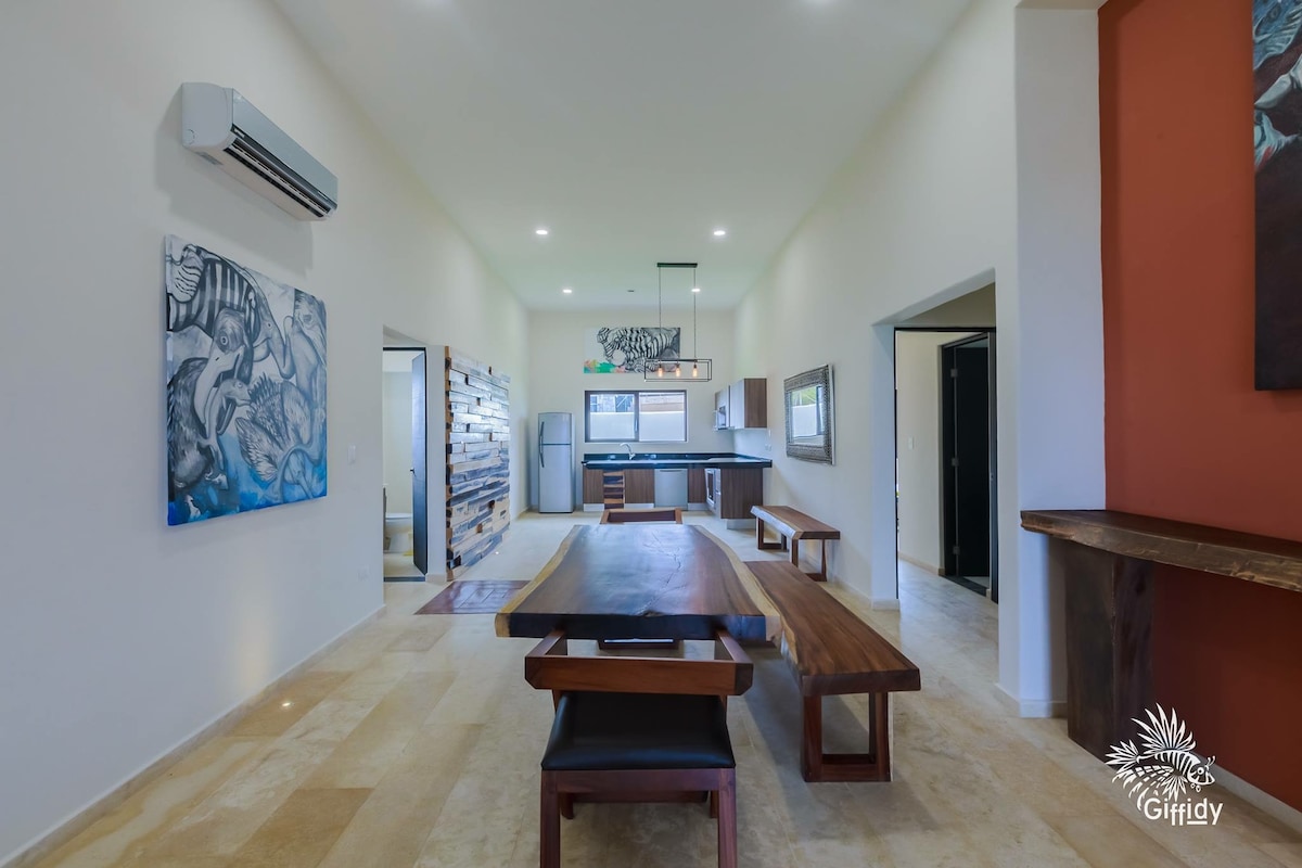 Hanya beberapa langkah ke pantai di Lautan Caribbean, rumah ini terletak di tingkat satu penginapan berpagar di kejiranan pusat La Gloria yang indah. Nikmati kopi pagi anda di anjung depan mengagumi laut atau koktel petang di patio persendirian yang dikelilingi oleh bunga & pokok palma! Unit ini ada semua yang anda perlukan. Jarak berjalan kaki ke restoran, kedai runcit dan kedai dobi yang hebat. Akses mudah ke teksi & bas tempatan. Perjalanan singkat ke pusat bandar & Playa Norte.