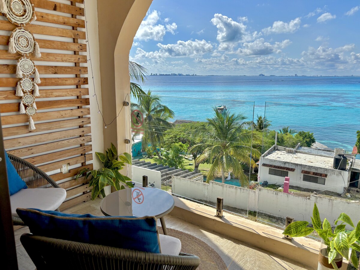 🌟 "If I could rate it 6 stars I would!" -Guest 900 sq ft loft-style Beach Penthouse in the best location in Cancun! 👉 Steps to the sand 👉 2 rooms with 3 beds (king, queen, sofa-full), 👉 2 private balconies (private rooftop balcony) 👉 2 full bathrooms (w/bidet hose) 👉 Full kitchen 👉 Smart TV, Netflix, WIFI (not fast) 👉 Cleaning service is included every other day 👉 Beach towels provided at the lobby 👉 1-min walk to restaurants & nightlife!!! That means you'll be able to hear it
