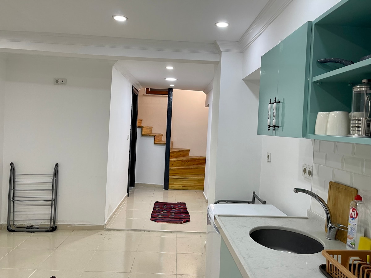 Comfortable split-level apartment in Balat with a bedroom/living area, kitchen, and bathroom on the lower level. Ideal for students on an exchange program, solo travellers, or couples for longer stays. Located in a quiet street close to cafés, shops, and transport, it offers a practical and affordable base for exploring Istanbul. 2-3 km to Sultanahmet, Taksim & Galata. *Ins/tag/ram @istanbnb *Touristic Rental Residence Permit 34-3193