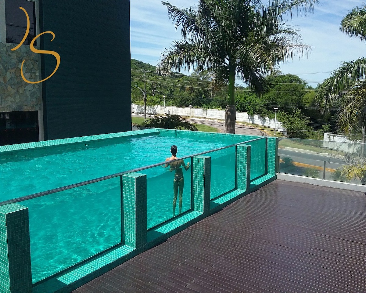 Apto com vista mar, piscina aquecida e garagem