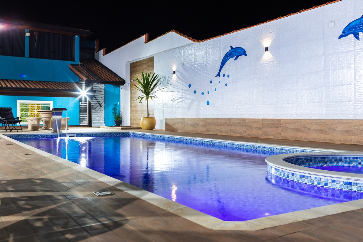 Bandar kecil yang membuat anda berasa seperti di rumah sendiri, 3 bilik yang selesa, menjadi suite, jumlah 4 bilik mandi, 2 dalaman dan 2 luaran, dengan kotak dan air panas. Wi-fi 100 megas gentian optik, TV LCD dan kipas di persekitaran. Anda akan mempunyai kebebasan sepenuhnya, gunakan dengan kolam kasih sayang, jika anda ingin menikmati kebun kami, anda boleh makan beri hitam, pitanga, avokado dan lemon, tetapi jangan rosakkan... Kami mempunyai kolam panas 350.00 yuran tunggal, kecuali musim sejuk 550.00 yuran tunggal dan pilihan dibayar 7 hari sebelum ketibaan.