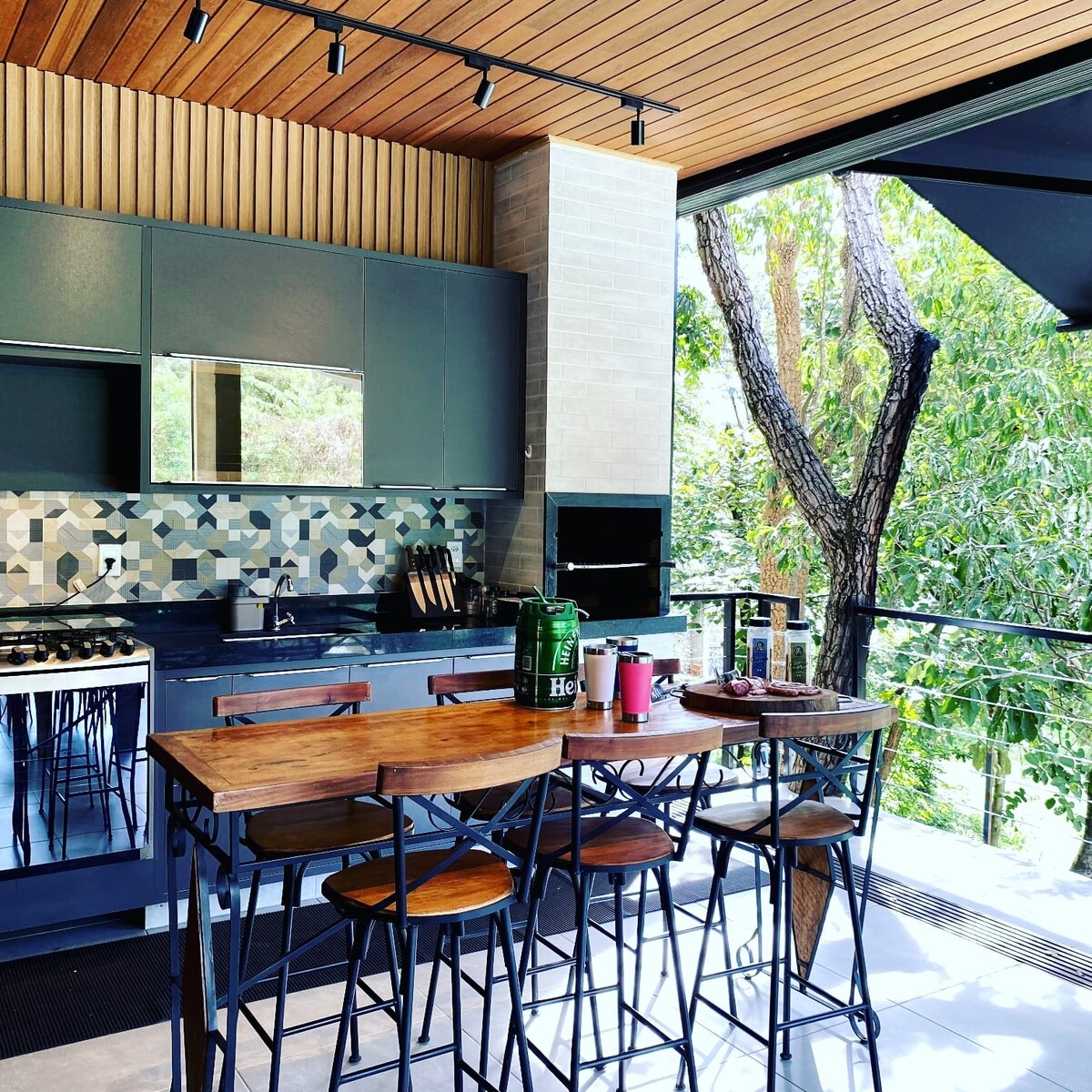 Bersantai di ruang yang tenang, bergaya dan bergaya ini. Dengan banyak kehijauan, halaman, pemandangan hutan, dinding kaca dan grid hitam yang penuh dengan pesona. Garaj untuk dua kereta dan Kawasan Perkhidmatan. Pintu dan tingkap dengan bingkai hitam dan kaca. Bilik mandi dengan jubin porselin yang digilap, ceruk, paip dengan bukaan yang berbeza, pancuran mandi moden dan dengan cermin super. Konsep terbuka dengan Ruang tamu dan dapur dengan beberapa titik cahaya bebas. Pulau yang sangat moden dan banyak kabinet.