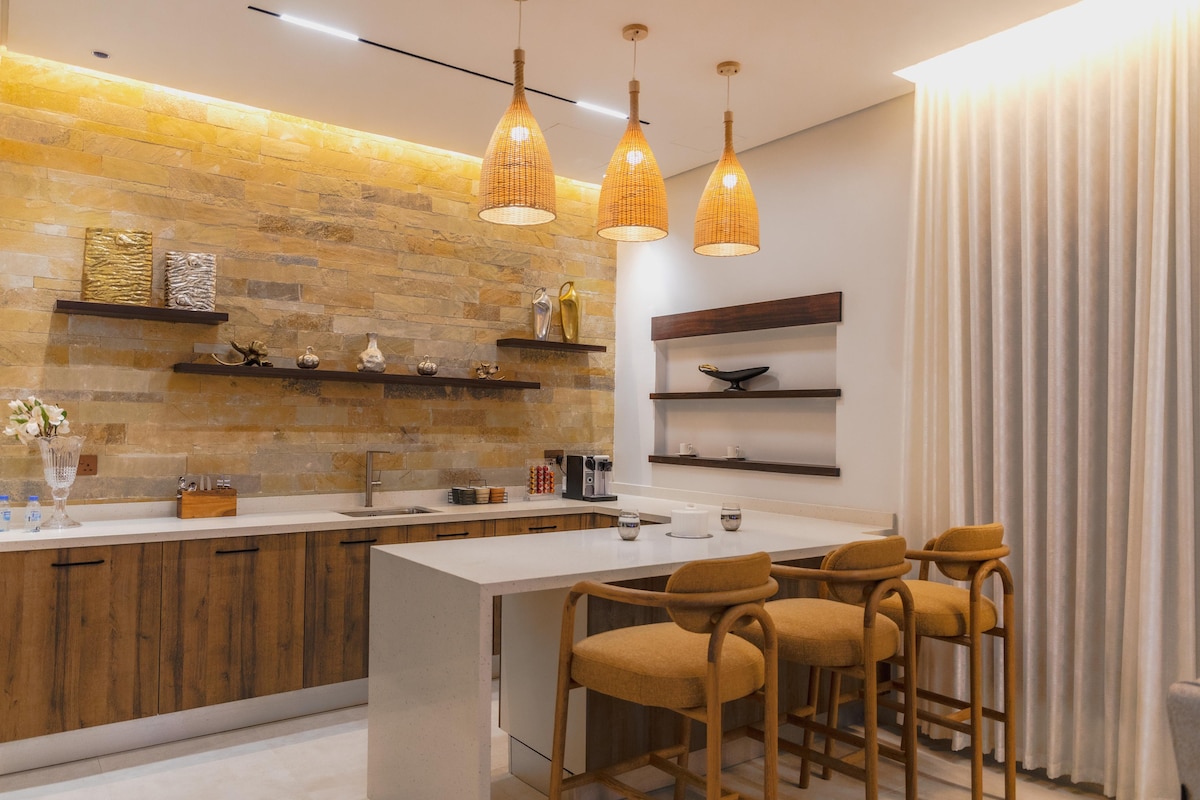 Al Tanoor House in Nizwa is a spacious, welcoming home with two bedrooms, three bathrooms, a living room with dining area and work desk, plus a private soundproof cinema for fun movie nights. Relax in the sauna, hot tub, steam room, or the year-round pool, garden, and terrace. Just a 2-minute walk from Nizwa Fort and near the Souq and Museum, it’s 141 km from Muscat Airport—perfect for families and friends exploring the city.