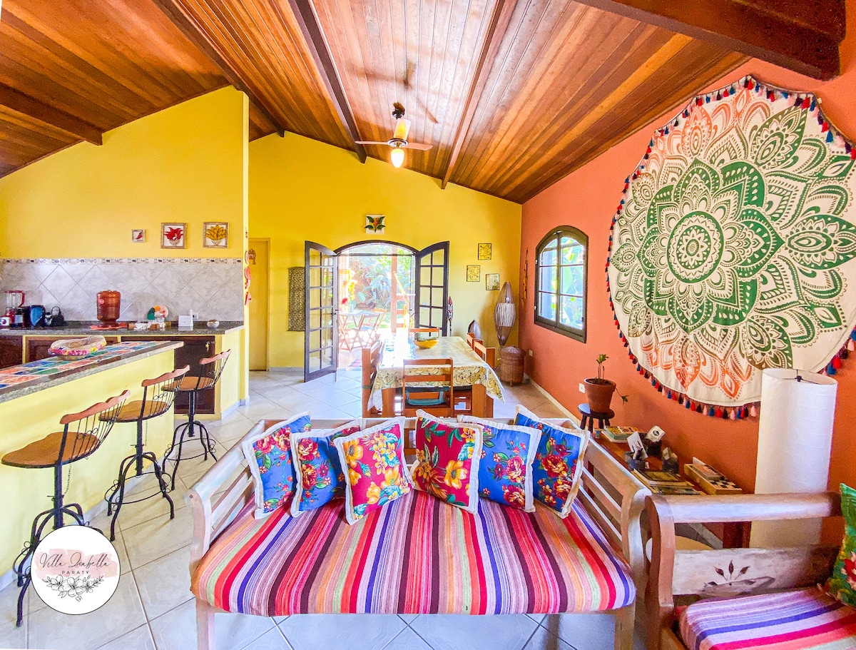 Selamat datang CASA PÍCOLA. Kami berada di kondominium persendirian yang menawan 7 menit dari Pusat Bersejarah. Rumah gaya kolonial sangat selamat untuk keluarga anda dalam komuniti berpagar dengan ruang yang luas untuk kanak-kanak, 2 suite besar, pancuran mandi tekanan tinggi (dandang), Wi-Fi yang hebat, ruang yang luas untuk kanak-kanak dan kemudian haiwan peliharaan! Rumah ini menawarkan semua keselesaan yang diperlukan untuk menghabiskan hari-hari yang luar biasa di Paraty. Katil king, penyaman udara, dapur dan ruang tamu yang besar dan kawasan luar dengan barbeku.