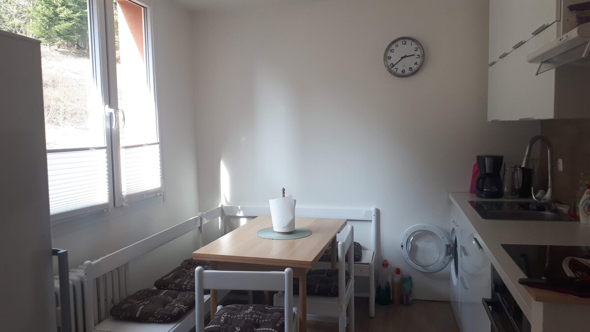 Apartmen gunung yang selesa dan cerah dengan balkoni. Dikelilingi oleh alam semula jadi, ia menawarkan ketenangan, kesejahteraan dan rehat. Semuanya dalam ketersediaan yang baik untuk menggunakan semua keindahan dan tarikan Gunung Jizera. Terdapat sudut dapur lengkap, TV Pintar (Netflix) dan sambungan Wifi percuma. Kotak Ski yang dipanaskan untuk dua pasang ski dan kasut digunakan untuk menyimpan peralatan ski. Basikal boleh disimpan di tempat simpanan basikal yang berkunci. Mesin basuh (berduit) boleh digunakan di tingkat bawah bangunan. Sebuah tempat letak kereta luar yang percuma disediakan di hadapan bangunan.