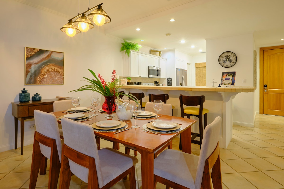 Bercuti ke ketenangan di kondominium baru yang direka dengan indah ini, di mana pemandangan gunung yang menakjubkan bertemu dengan keselesaan moden. Terletak di hujung selatan Playa Jaco yang lebih tenang dan mesra keluarga, kondominium 2 bilik tidur 2 bilik mandi yang cerah dan lapang ini adalah percutian yang sempurna jika anda inginkan gabungan pemandangan hijau yang subur dan suasana pantai. Terletak hanya 1.5 jam dari lapangan terbang SJO, ia hanya beberapa langkah dari pantai dan 10 minit berjalan kaki singkat ke pusat bandar di mana anda boleh menemui banyak kedai, barangan runcit dan restoran