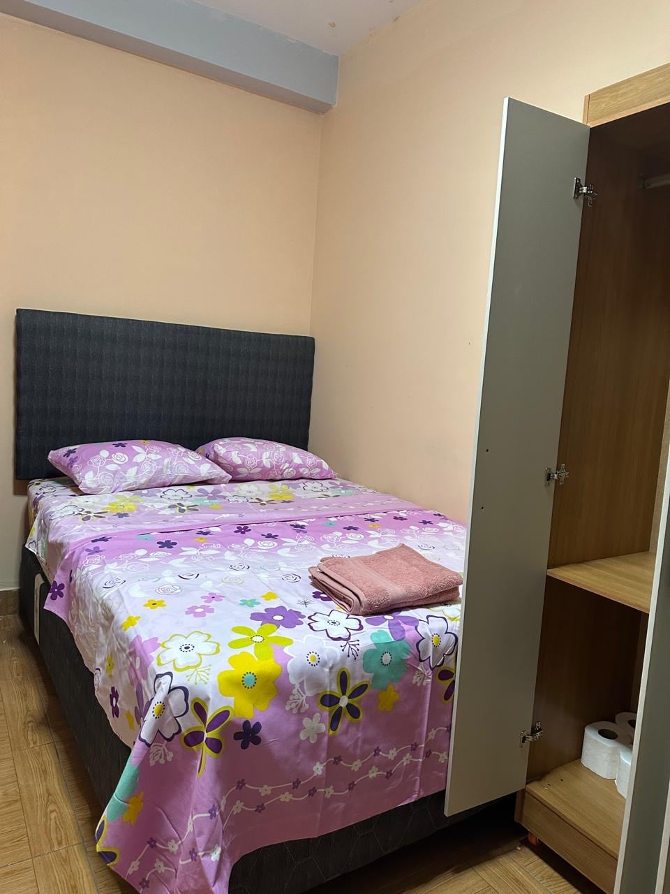 Departamento amoblado con todo lo necesario para una estadía cómoda: cama de 2 plazas, baño privado, sala comedor, cocina equipada, y buena ubicación.